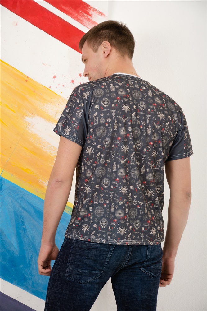 Стильная мужская футболка с коротким рукавом. Данная модель выполнена из ткани ложная сетка. Идеально подойдет для прогулок в жаркую погоду.