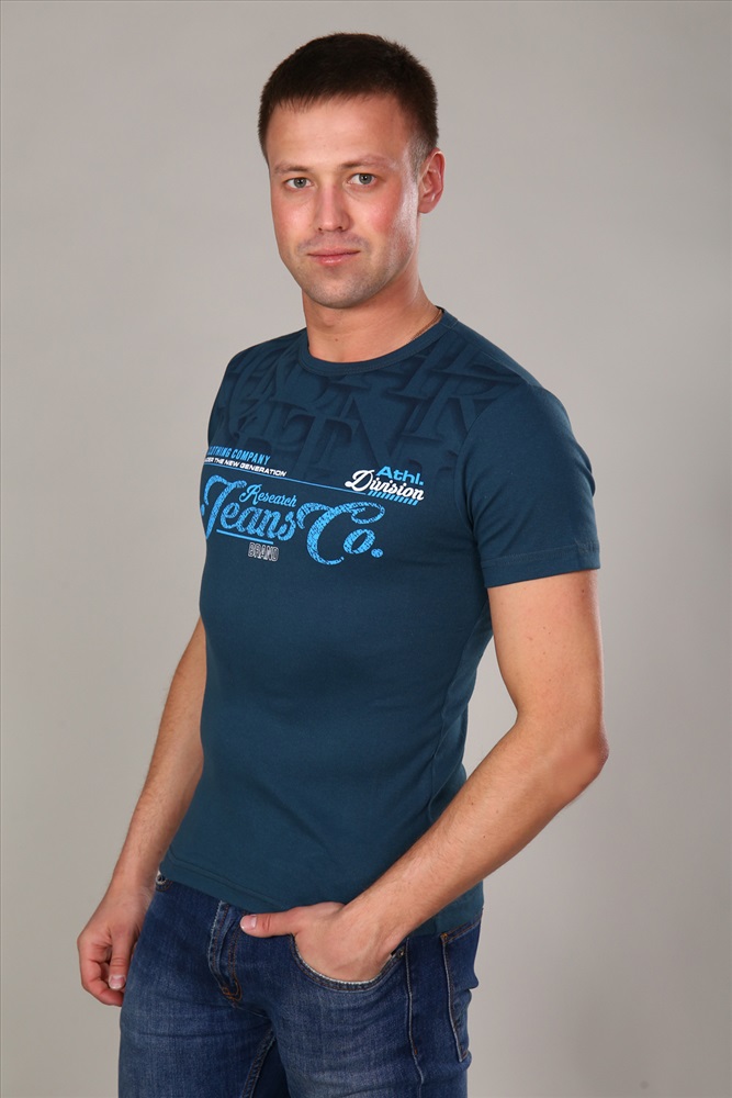 Мужская футболка из рибаны. Короткие рукава, круглая горловина, прямой силуэт.