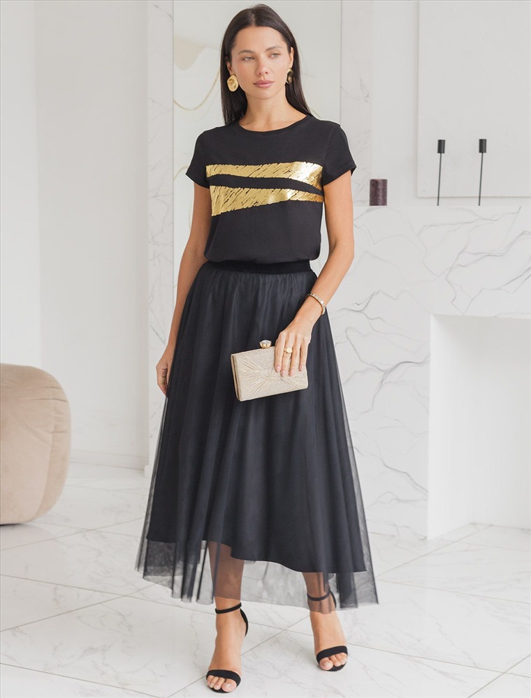 Эта нарядная футболка подходит для создания образа на каждый день и идеально подойдет на выход. Модель не мнется, что делает ее практичным вариантом для активных женщин, которые ценят стиль и удобство.