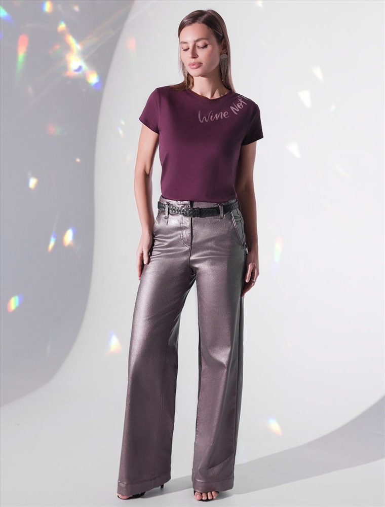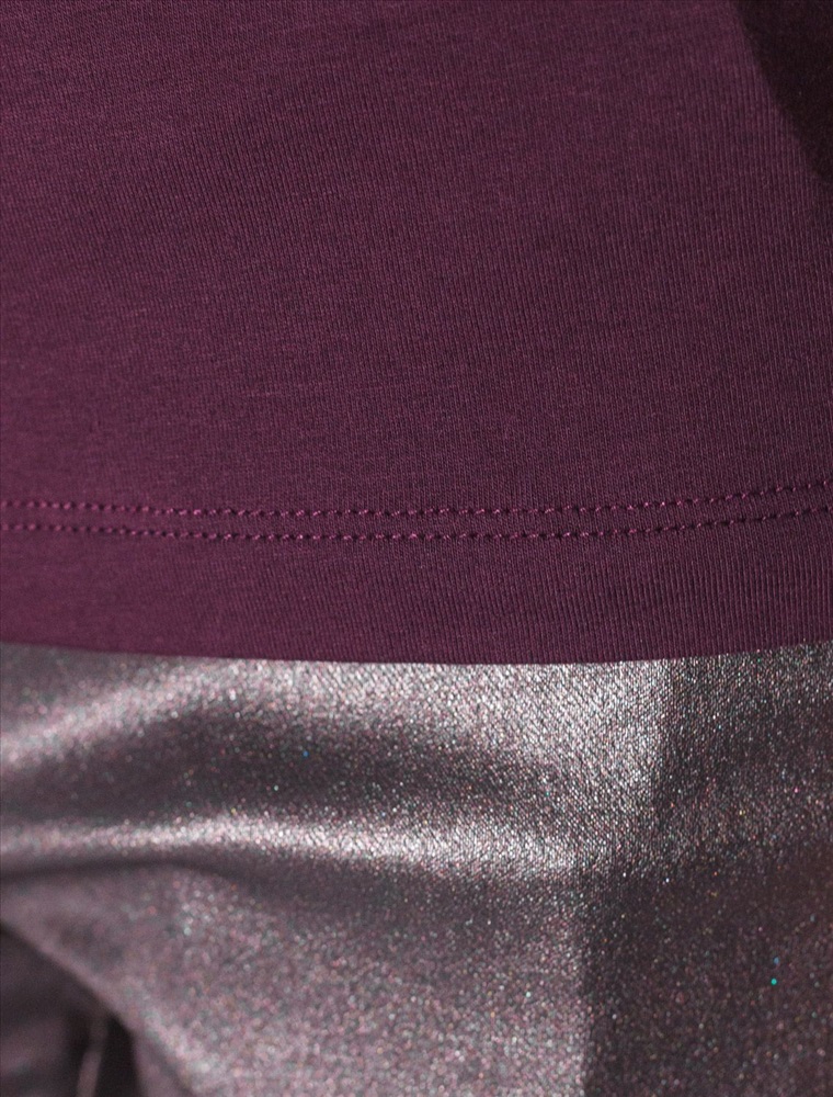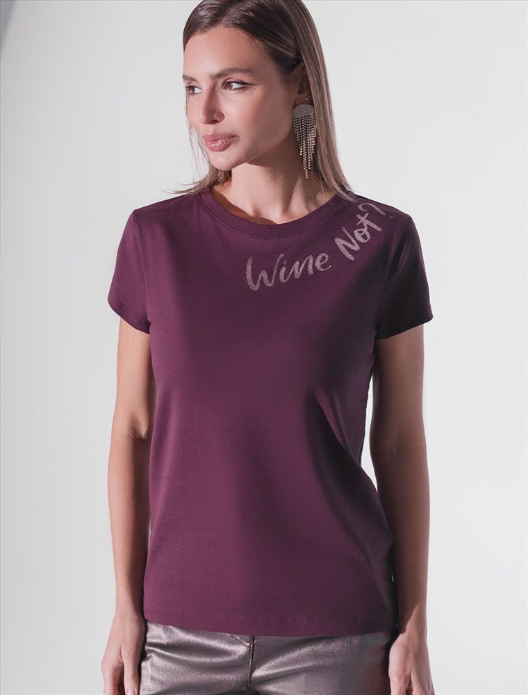 Футболка цвета бургунди идеально подходит для вечеринки и создания яркого образа. Оригинальный принт из устойчивых серебристых красок в виде надписи придает изделию шикарный вид, который привлечет внимание на любом мероприятии. Модель с круглым вырезом и классическим коротким рукавом обеспечивает свободу движений и комфорт в носке. Такой фасон изделия подходит на большие размеры, гармонично сидит на фигуре и помогает создать легкий акцент на достоинствах. Аккуратный круглый вырез красиво подчеркивает шею и делает образ элегантным, сохраняя актуальность для разных случаев — от рабочих встреч до вечерних прогулок и праздничных мероприятий.