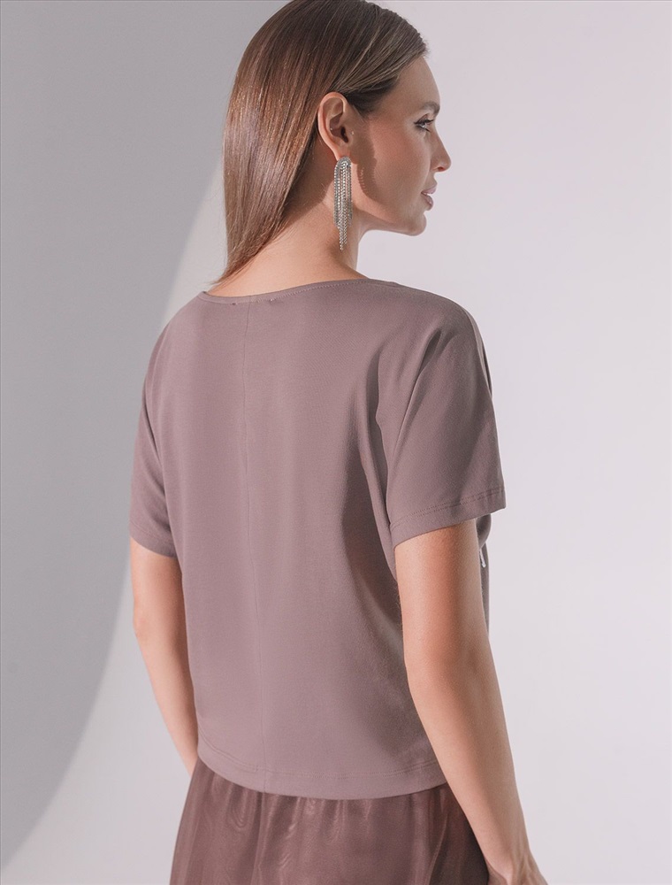 Эта нарядная футболка подходит для создания образа на каждый день и идеально подойдет на выход. Модель не мнется, что делает ее практичным вариантом для активных женщин, которые ценят стиль и удобство.