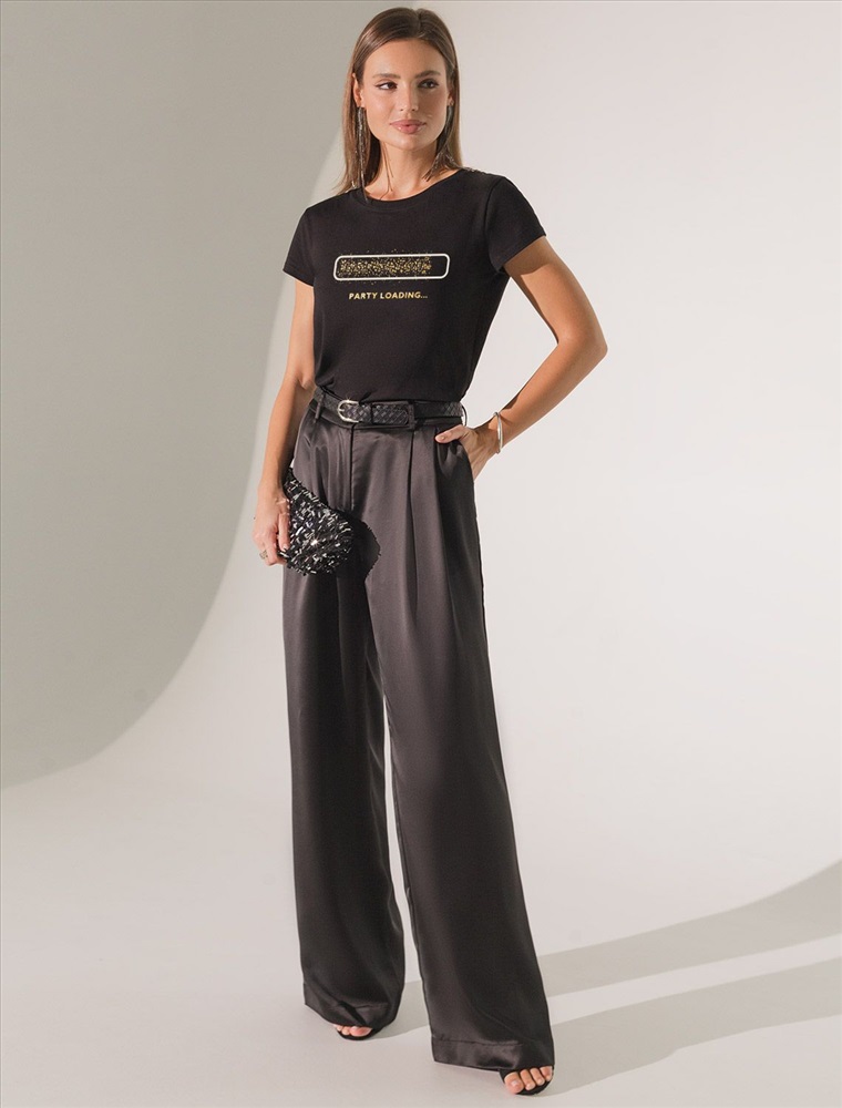 Эта нарядная футболка подходит для создания образа на каждый день и идеально подойдет на выход. Модель не мнется, что делает ее практичным вариантом для активных женщин, которые ценят стиль и удобство.