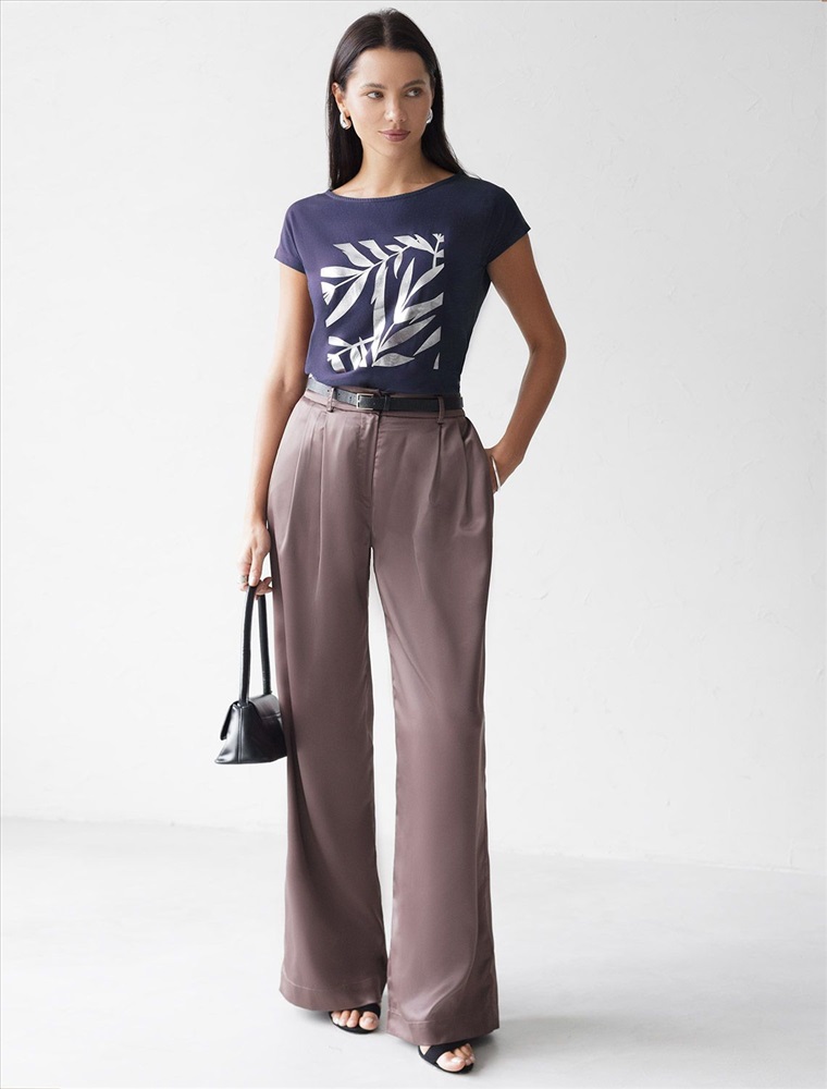 Эта нарядная футболка подходит для создания образа на каждый день и идеально подойдет на выход. Модель не мнется, что делает ее практичным вариантом для активных женщин, которые ценят стиль и удобство.