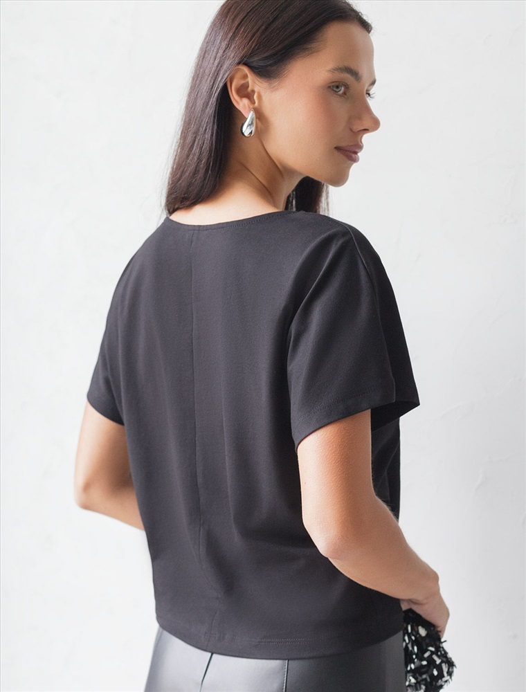 Эта нарядная футболка подходит для создания образа на каждый день и идеально подойдет на выход. Модель не мнется, что делает ее практичным вариантом для активных женщин, которые ценят стиль и удобство.