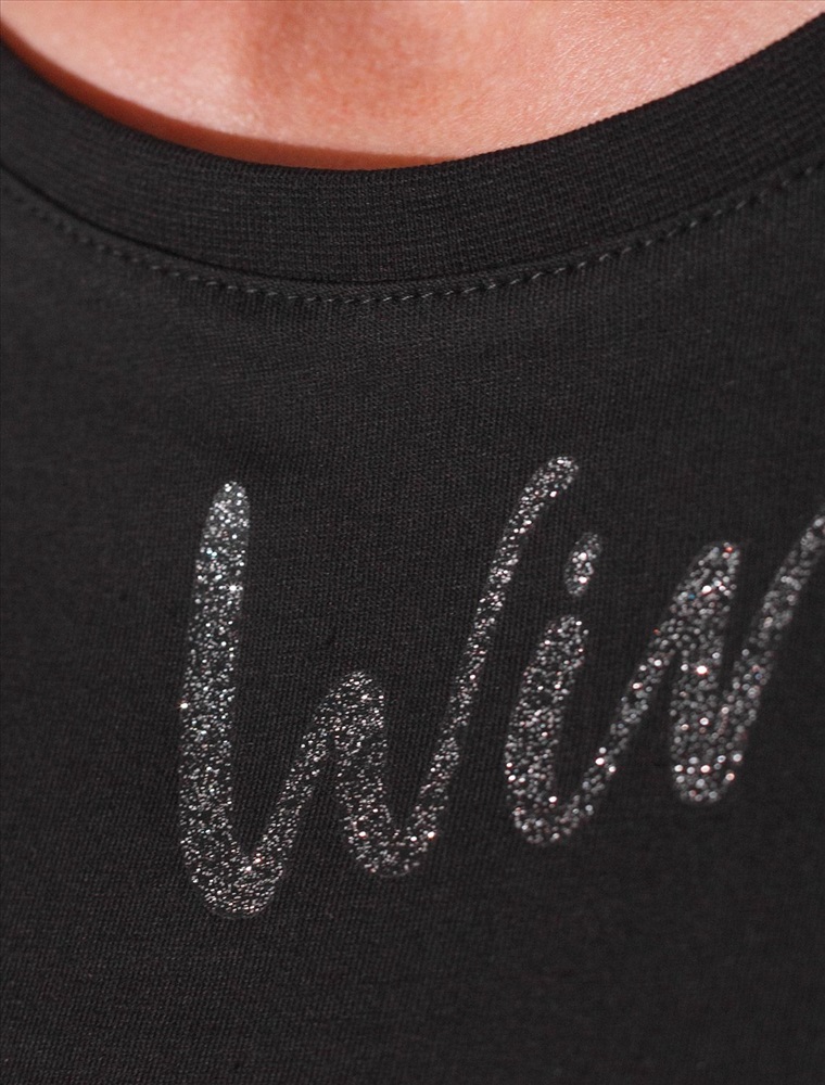 Футболка черного цвета идеально подходит для вечеринки и создания яркого образа. Оригинальный принт из устойчивых серебристых красок в виде надписи придает изделию шикарный вид, который привлечет внимание на любом мероприятии. Модель с круглым вырезом и классическим коротким рукавом обеспечивает свободу движений и комфорт в носке. Такой фасон изделия подходит на большие размеры, гармонично сидит на фигуре и помогает создать легкий акцент на достоинствах. Аккуратный круглый вырез красиво подчеркивает шею и делает образ элегантным, сохраняя актуальность для разных случаев — от рабочих встреч до вечерних прогулок и праздничных мероприятий.