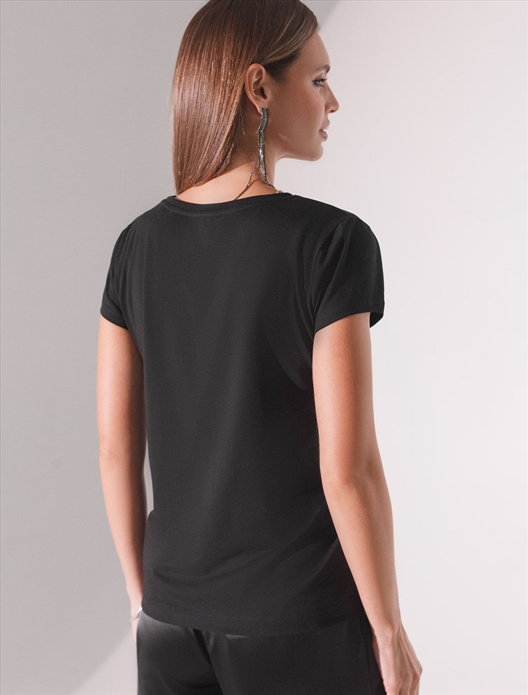 Эта нарядная футболка подходит для создания образа на каждый день и идеально подойдет на выход. Модель не мнется, что делает ее практичным вариантом для активных женщин, которые ценят стиль и удобство.