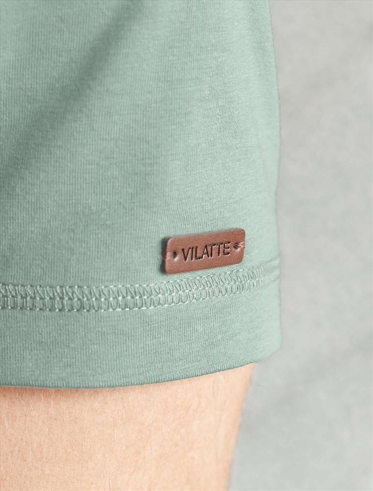 Однотонная футболка выполнена в минималистичном стиле, дополнена аккуратной вышивкой на груди в виде буквы V в тон изделия, а так нашивкой на рукаве из эко-кожи с логотипом VILATTE. Подходит как классический вариант для работы в офисе под пиджак, так и для повседневной носки или занятий спортом. Мягкая ткань приятна к телу, не вызывает дискомфорта и идеально подходит для дома или летних прогулок благодаря короткому рукаву.