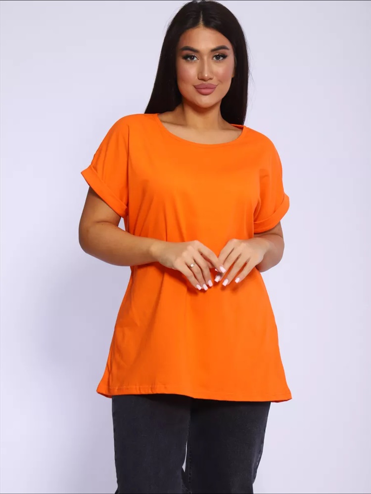 Состав: Хлопок 100% Модель: Футболка без рисунка с отворотами на рукавах, хлопок 100%, Арт. 561 Тип товара: футболка Материал: кулирка пенье | кулирка пенье Бренд: Vesta' Рукав: короткий рукав Сезонность: лето | осень | весна | зима Силуэт: свободный Скидка: любая Стиль: повседневный Женская базовая однотонная футболка из 100% натурального хлопка идеальной длины. Маст-хэв женского гардероба. Универсальная модель свободного покроя умеренный оверсайз с короткими рукавами и округлым вырезом горловины будет прекрасно смотреться с джинсами, брюками и юбкой, ее можно надеть в офис под кардиган или пиджак. Стильная футболка для повседневной носки, спортивная майка для бега и йоги, футболка для фитнеса - гигроскопична и не сковывает движений. Вместе с велосипедками - современная физкультурная форма для девушек. Всегда актуальная в качестве подарка на любой праздник, так как является универсальной. Таблица размеров и веса