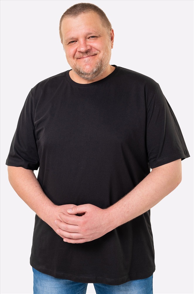 Однотонная футболка больших размеров выполнена из натурального 100% хлопка. Черная футболка унисекс подходит для мужчин и женщин.
