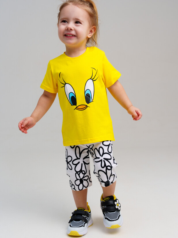 О товаре Футболка детская для девочки. Высокое содержание хлопка. Благодаря наличию эластана в составе ткани изделие держит форму и меньше мнется. Застежка на кнопки на плече. Модель выполнена из качественного и приятного на ощупь трикотажа. СОСТАВ 95% хлопок, 5% эластан Уход Максимальная температура стирки 30°С. мягкий режим. Не отбеливать. Утюжить при температуре не более 110°С. Чистка запрещена. Не применять сушку в барабане. Стирать с вещами такой же окраски. Стирать вывернутым наизнанку. Не утюжить отделку. Предварительная стирка обязательна. Утюжить с изнаночной стороны. Бренд PlayToday АРТИКУЛ 12543028 Цвет Желтый Возрастная категория Малыши Пол Женский Сезон Демисезон Год коллекции 2025 Страна бренда Германия Страна производства Китай Возраст 12 месяцев, 18 месяцев, 24 месяца, 14 месяцев, 16 месяцев Маркировка Товары легкой промышленности и одежда Миниколлекция Play & Joy