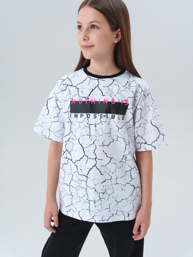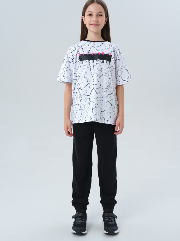 Школьная модная футболка оверсайз с коротким рукавом для девочки от PlayToday — идеальное сочетание стиля, комфорта и свободы движений. Универсальная вещь для школы, спорта и активных будней.
