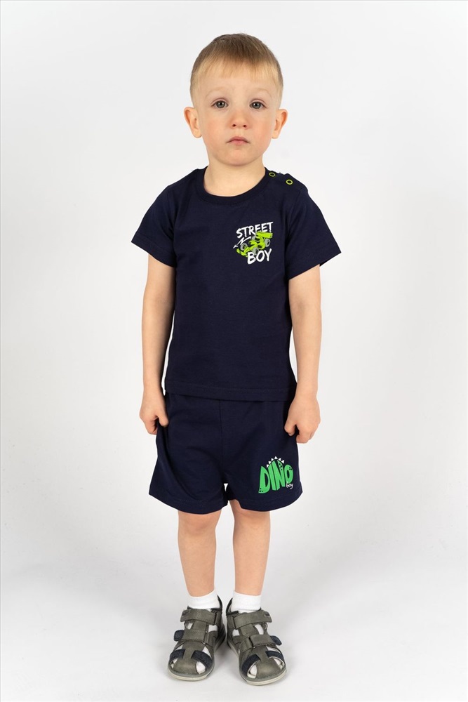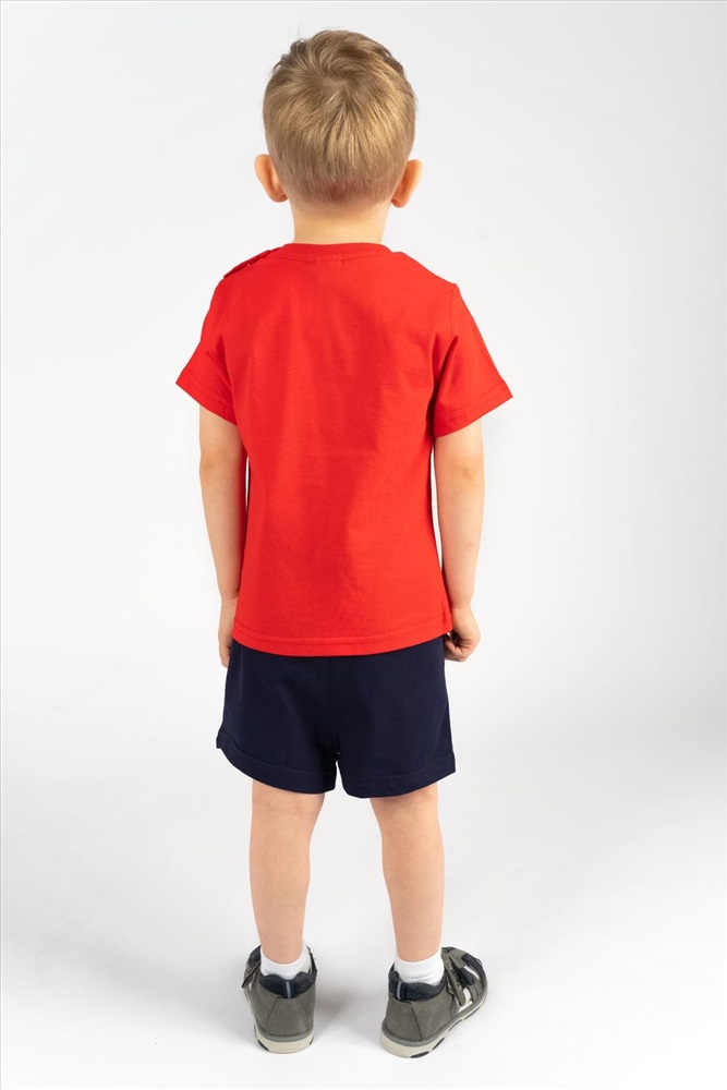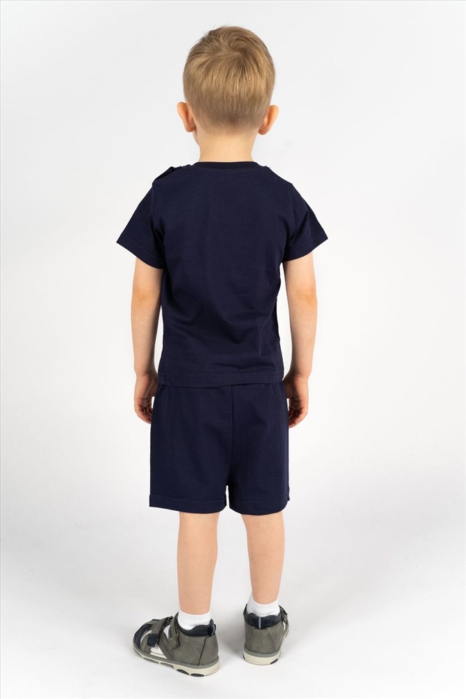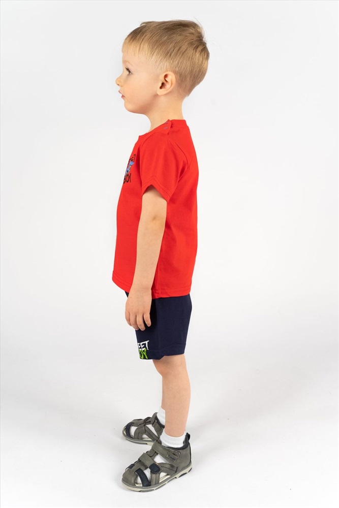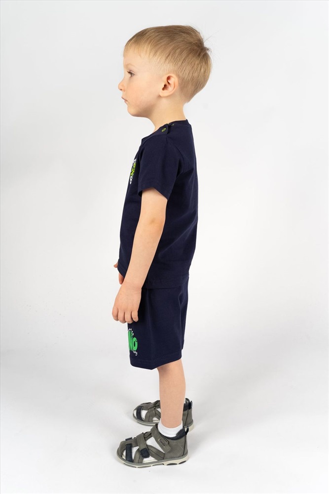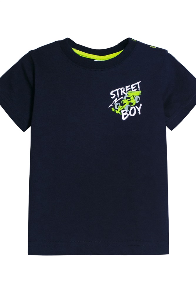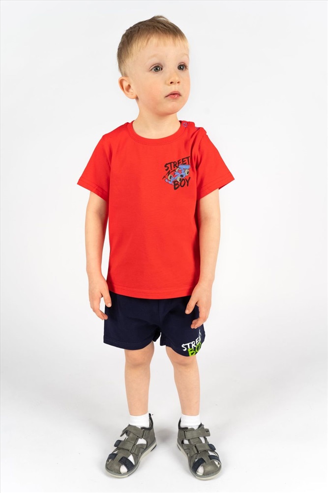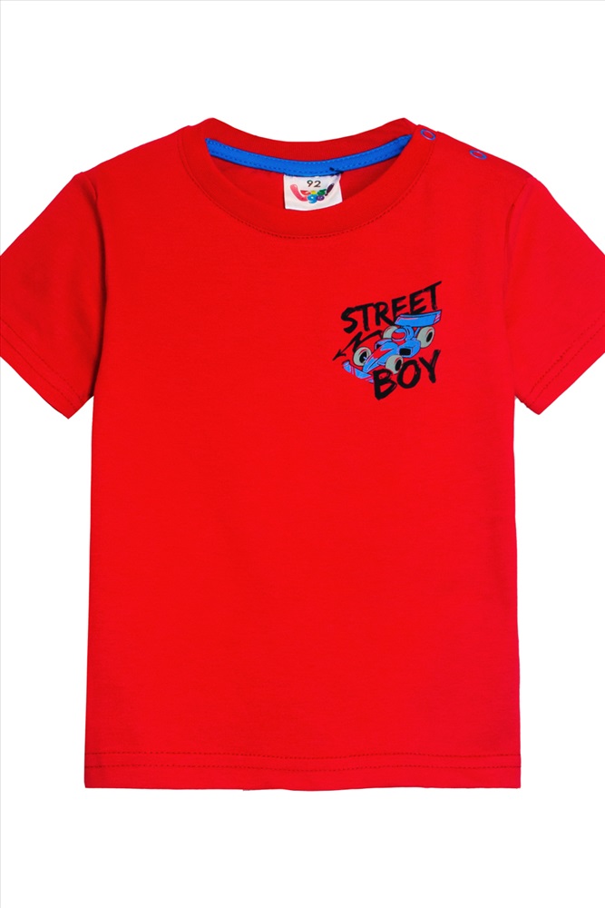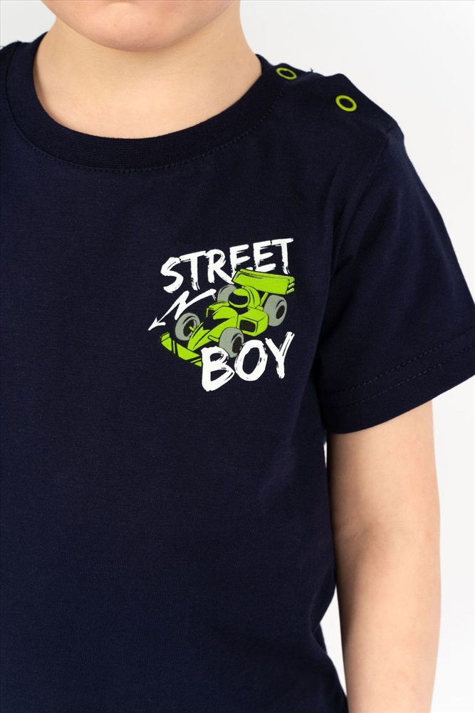 Футболка для мальчика прямого силуэта с втачным коротким рукавом. Незаменимая вещь на каждый день и для летних прогулок! Прекрасно сочетается с джинсами, брюками или шортами. Яркий, заметный принт по достоинству оценят любители машинок и гонок! Горловина круглая. Горловина спинки внутри укреплена настрочной планкой из кулирки. На левом плече застежка на 2 пробивные кнопки. 1 кнопка на воротнике, 2 по центру плеча. На полочке принт шелкография.