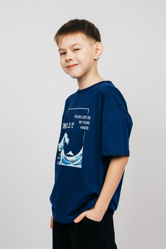 Состав: 100% Хлопок Модель: Футболка для мальчика 52368 детская Тип товара: футболка Материал: кулирка | кулирка Бренд: ТМ Let's Go Отделка: с печатью Рисунок: надпись | разное Рукав: короткий рукав Сезонность: лето | осень | весна | зима Силуэт: свободный Стиль: повседневный Футболка для мальчика выполнена из 100% хлопка. Футболка свободного силуэта (оверсайз) с коротким рукавом. Благодаря эластичной горловине, выполненной из рибаны, футболку удобно снимать и надевать. На полочке принт шелкография. Надпись переводится как На волне; Твоя жизнь в твоих руках; Будь оптимистом. Материал не растягивается и не деформируется. Таблица размеров и веса
