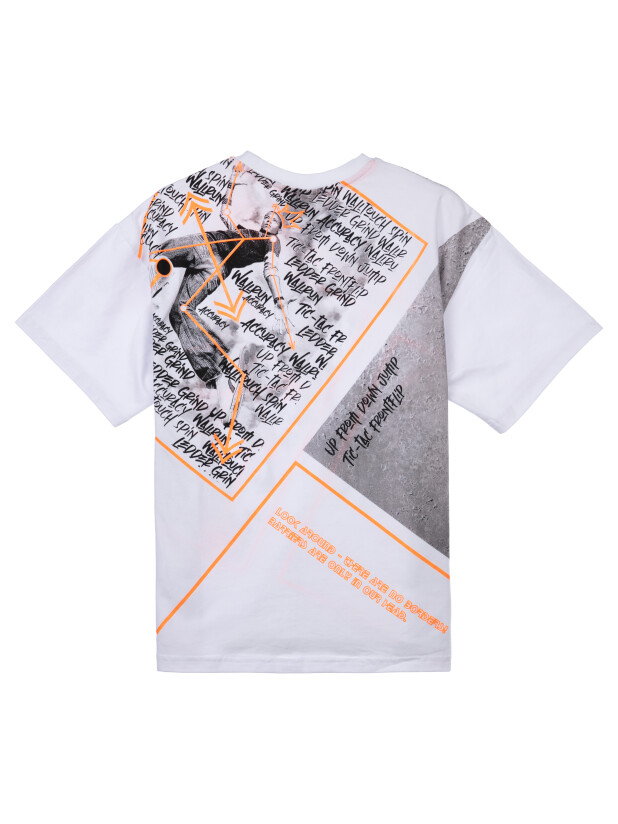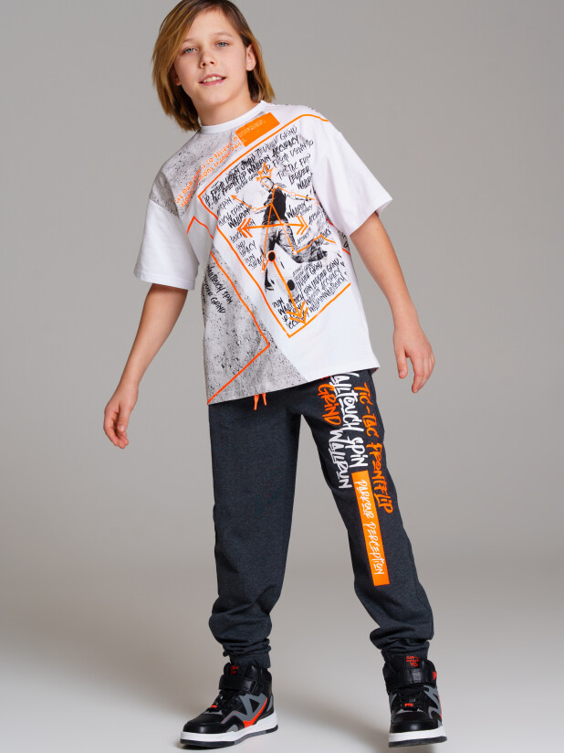 Футболка свободного силуэта из качественного и приятного на ощупь трикотажа джерси. Высокое содержание хлопка 95%. Благодаря наличию эластана в составе ткани изделие проще в уходе и держит форму.