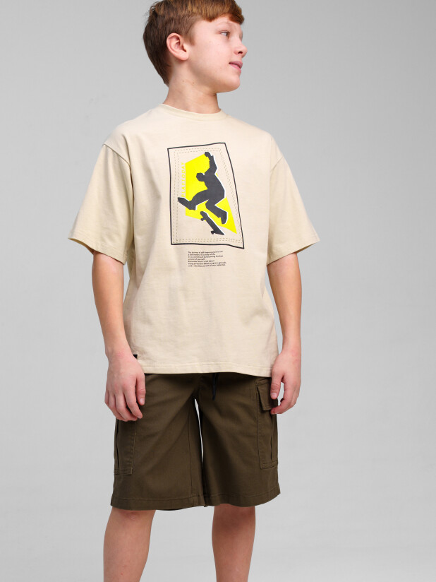 Футболка оверсайз для мальчика подростка. Высокое содержание хлопка. Благодаря наличию эластана в составе ткани изделие держит форму и меньше мнется. Модель выполнена из качественного и приятного на ощупь трикотажа.