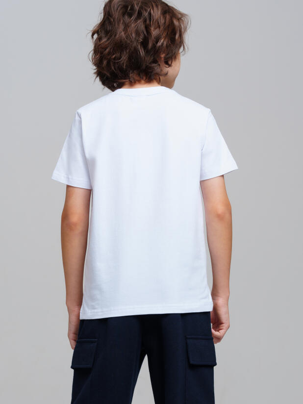 Футболка для мальчика подростка. Футболка из качественного и приятного на ощупь трикотажа джерси. Модель с высоким содержанием хлопка 95%. Благодаря наличию эластана в составе ткани изделие проще в уходе и держит форму. Модель выполнена из качественного и приятного на ощупь трикотажа.