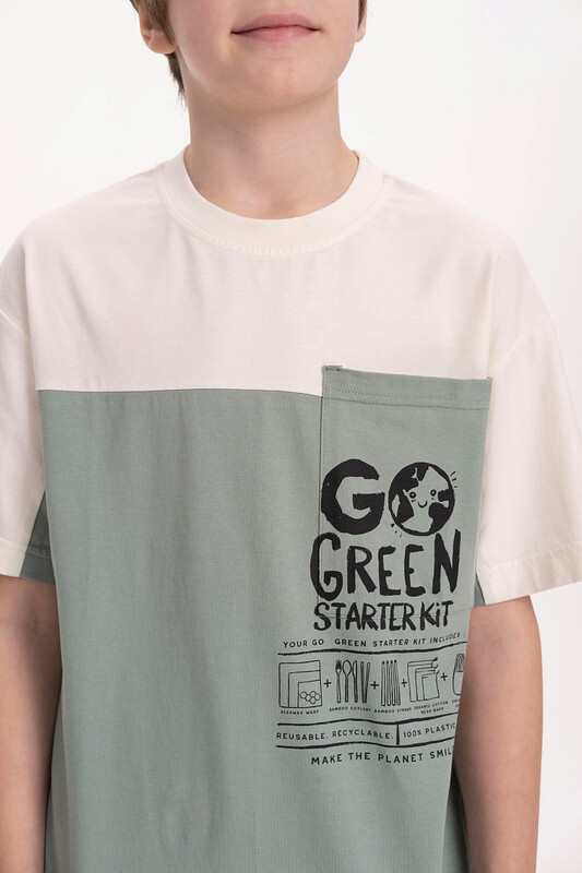 Футболка для мальчика свободного кроя - это идеальный выбор для активного ребенка. Вырез горловины обработан эластичной тканью — она прекрасно держит форму, не растягивается, при этом ребёнку удобно надевать и снимать футболку. Футболка летняя с надписями. "Go green! Started kit: your go green started kit includes: beeswax wrap, bamboo cultery, organic cotton mesh bags, organic cotton grocery bag" - Стань зеленым! Базовый набор: твой зеленый набор включает в себя: восковую упаковку, бамбуковые приборы и трубочки, сумки и упаковки из органического хлопка, "reusable .recyclable. 100% plastic free" - перерабатываются, многоразовые.100% без пластика, "make the planet smile" - подари планете улыбку. Спортивная футболка подходит как для подростков так и для малышей в детский сад. Подходит для любого времени года.