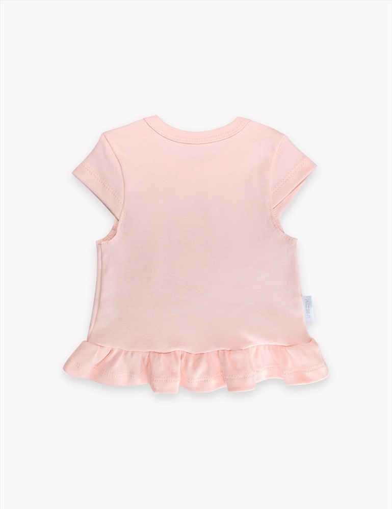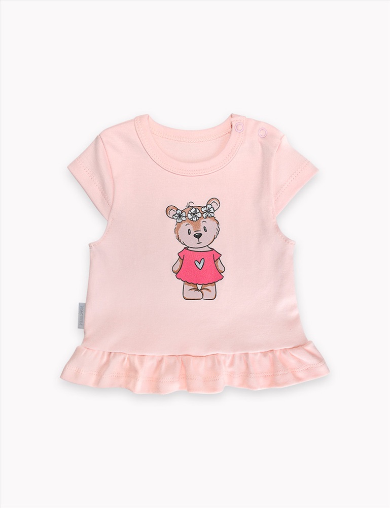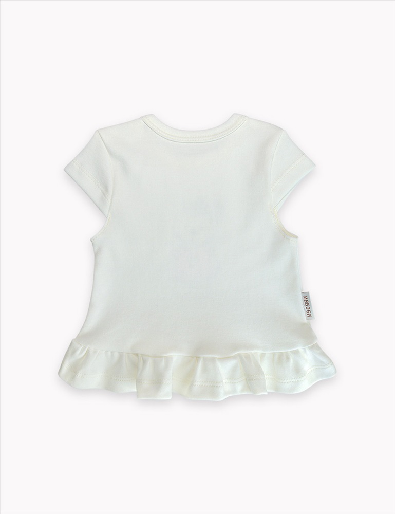 Футболка из коллекции Милашка предназначена для новорожденных и малышей, выполнена из интерлока (100% хлопок), материал средней плотности, нежный и эластичный, пропускает воздух и сохраняет тепло. Застежка на плече позволит в считанные секунды переодеть малыша. Стильный принт, нанесённый методом шелкографии на ткани. Модель будет идеально сочетаться со штанишками из одноимённой коллекции.