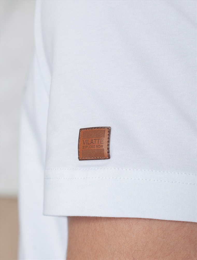 Футболка выполнена из премиального хлопка с эластаном. Авторский принт нанесен фактурными красками с устойчивым покрытием. Изделие комфортно сидит по фигуре, не сковывая движений. За счет среднего объема, хорошо подойдет как первый слой под пиджак, кардиган или бомбер. На рукаве нашивка из эко-кожи с логотипом бренда.