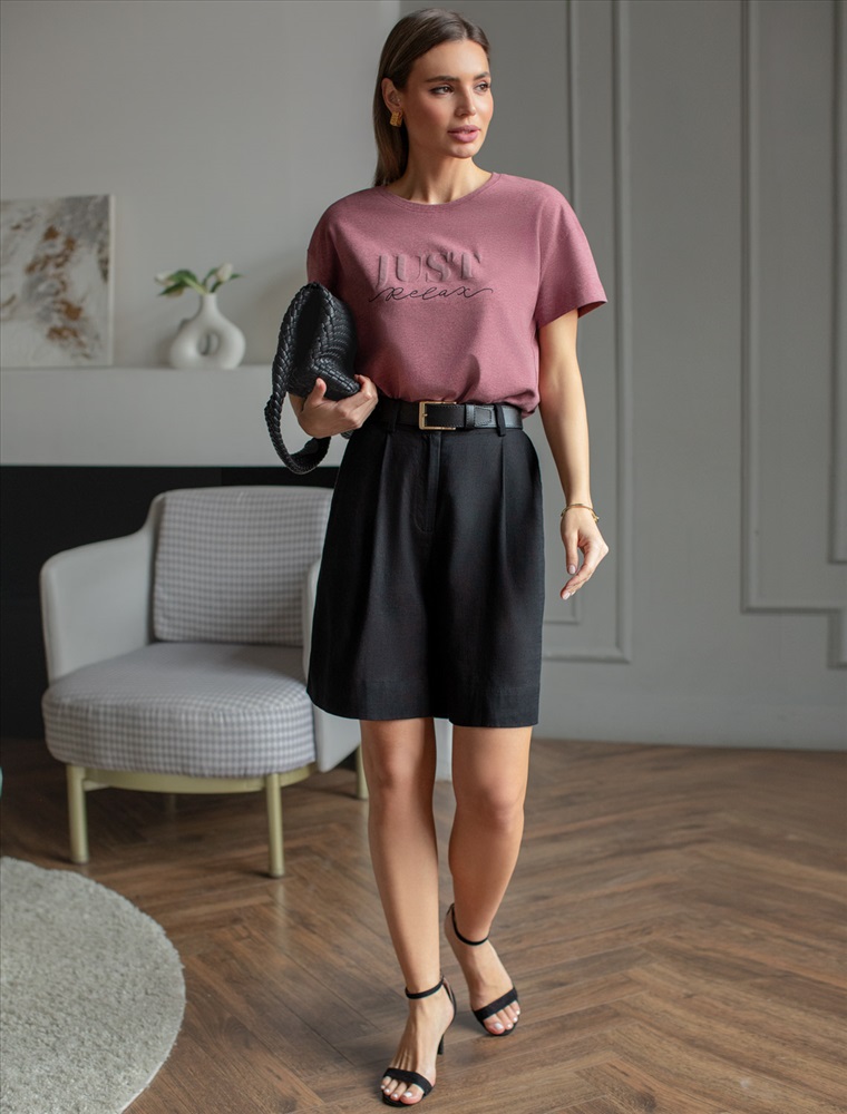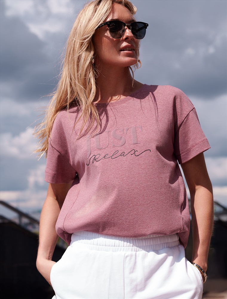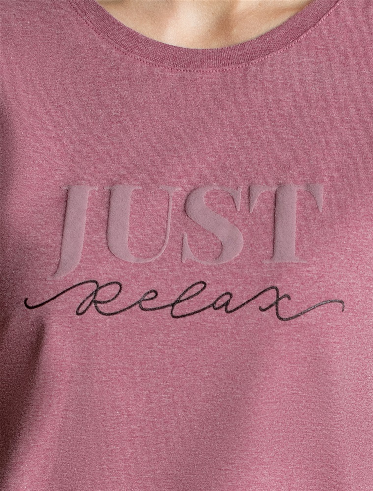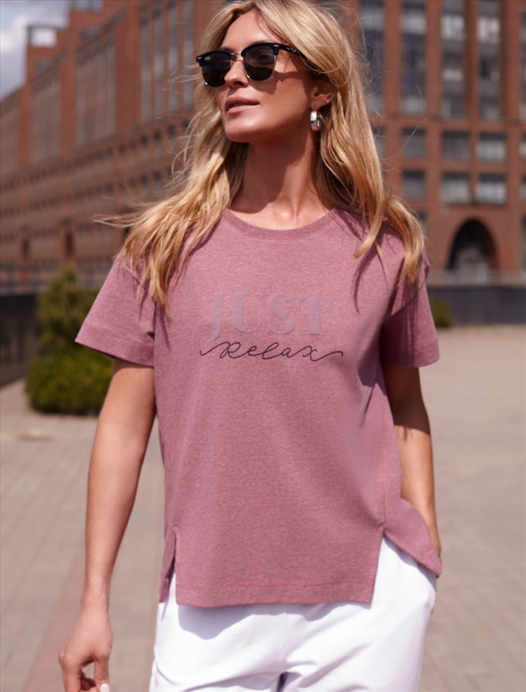 Футболка выполнена из премиального хлопка с авторским принтом. Just relax – «Просто расслабься» Свободная модель дополнена двумя вертикальными рельефами, заканчивающиеся разрезами. Мягкий эластичный хлопковый трикотаж гарантирует исключительный комфорт и уют дома. Идеально сочетается в костюме с брюками D44.131