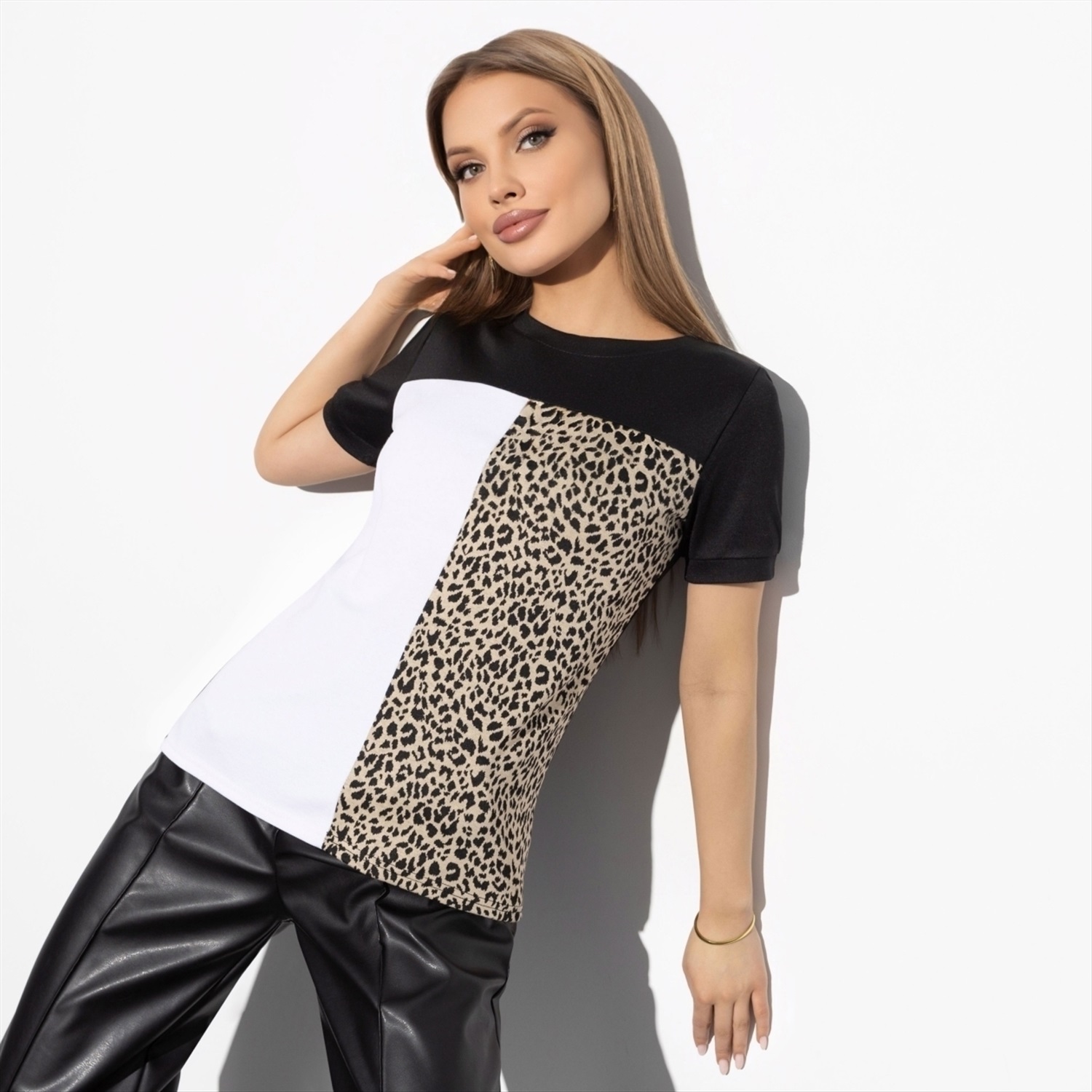 Состав: Трикотаж «милано», трикотаж «набивной» (65% п/э, 30% вискоза, 5% стрейч) Плотность ткани: Средняя Тип ткани: Трикотаж Вид застежки: Нет Дополнительный цвет ткани: Разноцветный Карманы: Нет Основной цвет ткани: Черный Отрезная талия: Нет Подклад: Нет Резинка по талии: Нет Рисунок/раппорт: Каждое изделие уникально из-за расположения рисунка на ткани Сезон: Круглогодичный Настоящая женщина состоит из светлой стороны, темной стороны и леопардовой стороны. Туда мы относим все взбалмошные поступки, спонтанные решения и самые жаркие свидания. Эта футболка излучает изысканность и элегантность, которая подчеркнет ваш неповторимый стиль. Ее утонченная текстура, созданная из сочетания трикотажей «милано» и «набивной», обеспечивает комфорт при носке и приятные тактильные ощущения. Надевайте эту футболку для создания утонченного образа, который привлечет восхищенные взгляды на любом мероприятии. С этой футболкой вы сможете легко адаптировать свой образ к различным ситуациям. Будь то повседневные прогулки или вечерние свидания, вы всегда будете выглядеть стильно и уверенно. Сочетайте ее с джинсами для кэжуал-лука или с элегантной юбкой для создания более формального стиля. Эта футболка станет незаменимой частью вашего гардероба, подчеркивая вашу уникальность в любой ситуации. Будьте настоящей фэшн-иконой, выражая свою индивидуальность через стиль с этой футболкой. Она поможет вам подчеркнуть светлую, темную и даже леопардовую стороны вашей личности. Сделайте смелый шаг в мир моды, выбрав эту уникальную модель для экспериментов с вашим образом. Комментарии к товару