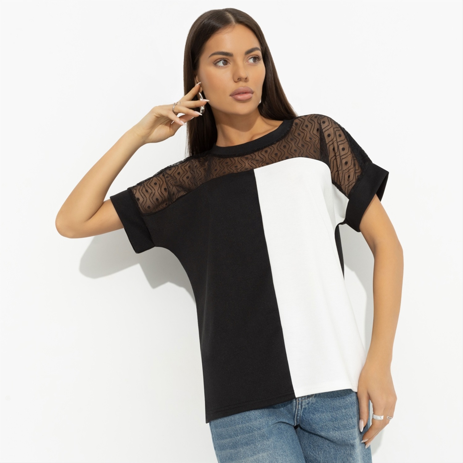 ТН ВЭД: 6109902000; Состав: «Милано», «гипюр-стрейч» (65% п/э, 30% вискоза, 5% стрейч); Плотность ткани: Средняя; Тип ткани: Трикотаж; Вид застежки: Нет; Дополнительный цвет ткани: Белый; Карманы: Нет; Основной цвет ткани: Черный; Отрезная талия: Нет; Подклад: Нет; Резинка по талии: Нет; Рисунок/раппорт: Каждое изделие уникально из-за расположения рисунка на ткани; Сезон: Зима; Силуэт: Прямой; Стиль: Повседневный Параметры модели на фото: Грудь: 88 см Талия: 61 см Бёдра: 89 см Рост: 170 см. Размер на модели: 44 Длина изделия: * 44 размер - 64 см * 46 размер - 65 см * 48 размер - 66 см * 50 размер - 67 см * 52 размер - 68 см * 54 размер - 69 см Длина рукава: * 44 размер - 15 см * 46 размер - 15,5 см * 48 размер - 16 см * 50 размер - 16,5 см * 52 размер - 17 см * 54 размер - 17,5 см Обхват груди: * 44 размер - 103 см * 46 размер - 107 см * 48 размер - 111 см * 50 размер - 115 см * 52 размер - 119 см * 54 размер - 123 см Обхват талии: * 44 размер - 98 см * 46 размер - 102 см * 48 размер - 106 см * 50 размер - 110 см * 52 размер - 114 см * 54 размер - 118 см Обхват бёдер: * 44 размер - 99 см * 46 размер - 103 см * 48 размер - 107 см * 50 размер - 111 см * 52 размер - 115 см * 54 размер - 119 см Вес товара, кг: * 52 размер - 0.25 Габариты товара (ДхШхВ), см.: * 52 размер - 32 х 32 х 2 Решено плавно возвращаться к работе после отдыха. А значит, можно не облачать себя в тугие оковы ремней и обязательств, а начать неделю с футболки CHARUTTI в черно-белом цвете и выражения благодарности всем коллегам. Они приятно удивятся! Футболка свободного кроя прямого силуэта. Комбинация нескольких видов материла. Спущена линия плеча. Отвороты на руках прошиты. Деликатные разрезы по бокам изделия. Футболка хорошо смотрится в заправленном виде и навыпуск. Футболка комбинированная «Ты в деле (exquisite)» — это идеальный выбор для тех, кто хочет сохранить комфорт и стиль, не жертвуя при этом ни одним из них. Этот уникальный продукт, выполненный из тканей «Милано» и гипюр-стрейч, представляет собой прекрасный пример соединения современного дизайна и функциональности. Если вы решили купить футболки оптом, вы не будете разочарованы — эта модель прекрасно подходит как для офиса, так и для повседневной жизни. Ее свободный крой и прямой силуэт создают ощущение легкости и свободы, а черно-белая гамма добавляет элегантности и универсальности в любой гардероб. Для женщин, которые ищут что-то особенное, футболка женская оверсайз «Ты в деле (exquisite)» станет настоящей находкой. Спущенная линия плеч и отвороты на руках придают этой модели нежный и непринужденный вид, идеально подходящий для тех, кто ценит стиль и комфорт. Комбинация нескольких видов материала позволяет создать уникальный внешний вид, который будет привлекать внимание и вызывать восхищение. Если вы планируете приобрести футболки женские оптом для вашего бутика или магазина, эта модель станет отличным дополнением к вашему ассортименту, привлекая самых разных клиентов. Футболка с принтом «Ты в деле (exquisite)» — это не просто элемент одежды, это способ выразить свою индивидуальность и стиль. Деликатные разрезы по бокам изделия добавляют изюминку и делают футболку еще более стильной. Она прекрасно смотрится как в заправленном виде, так и навыпуск, подчеркивая вашу фигуру и создавая гармоничный образ. Выбирая футболки женские больших размеров оптом, обратите внимание на эту модель — она подойдет для женщин всех форм и размеров, обеспечивая комфорт и уверенность в каждом движении.