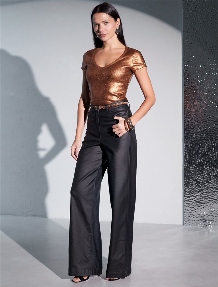 Повседневная футболка универсальна: она сочетается с джинсами, юбками или строгими брюками — легко создать как деловой образ для офиса, так и наряд для вечеринки или ужина вне дома. Матовое покрытие создает благородный блеск без лишней яркости, благодаря чему футболка смотрится свежо и актуально.