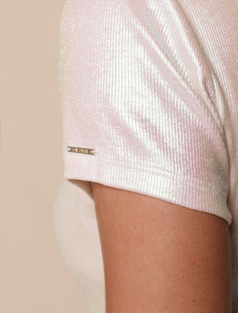 Повседневная футболка универсальна: она сочетается с джинсами, юбками или строгими брюками — легко создать как деловой образ для офиса, так и наряд для вечеринки или ужина вне дома. Матовое покрытие создает благородный блеск без лишней яркости, благодаря чему футболка смотрится свежо и актуально.