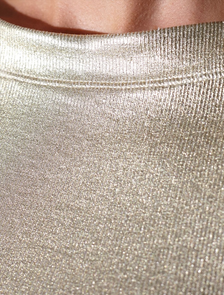 Стильная футболка золотистого цвета с вырезом лодочка выполнена из премиального хлопка с добавлением эластана. Эффектное матовое покрытие металлик придает футболке изысканный блеск. Вырез лодочка добавляет элегантности и женственности образу. Мелкий рубчик визуально вытягивает силуэт, за счет эластана в составе материал прекрасно тянется и садится на любую фигуру, в том числе большие размеры. Ткань износостойкая, сохраняет свой превоначальный вид даже после многочисленных стирок, отличается мягкостью и приятными тактильными ощущениями, такой материал не раздражает кожу, дарит ощущение уюта даже при длительном ношении, а воздухопроницаемость позволяет коже свободно дышать.