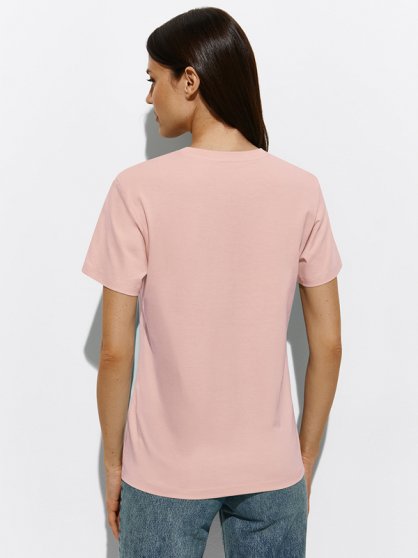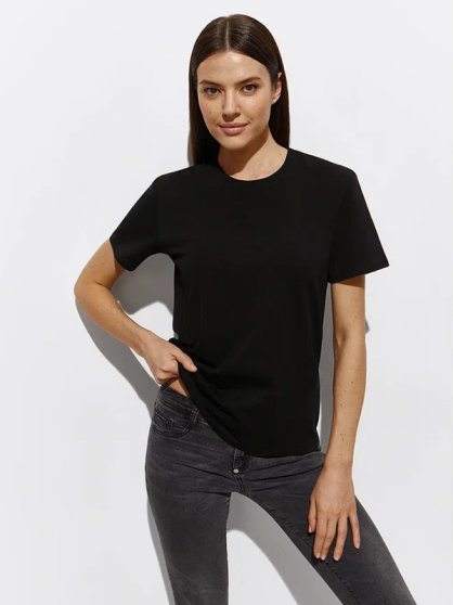 Оптовая продажа. Футболка женская из высококачественного хлопка, полуприлегающего силуэта, с короткими рукавами, округлым вырезом горловины, однотонная.