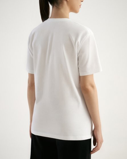 Оптовая продажа. Прямая, свободная футболка со спущенной линией плеча, короткими втачными рукавами, круглым вырезом горловины, графичным принтом в футуристическом стиле. Особенность этой модели – трикотаж средней плотности из американского хлопка с обработкой PEACH TOUCH. Мягкая, приятная на ощупь текстура натурального хлопка, гипоаллергенность, экологичность и отличная воздухопроницаемость сделают эту футболку хитом в летнем гардеробе.
