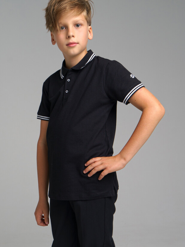 Школьная черная футболка поло с коротким рукавом для мальчика подростка от PlayToday — стильная и современная альтернатива классической рубашке. Лаконичный крой, контрастный воротник и комфортный материал делают его идеальным выбором для школы и повседневных образов.