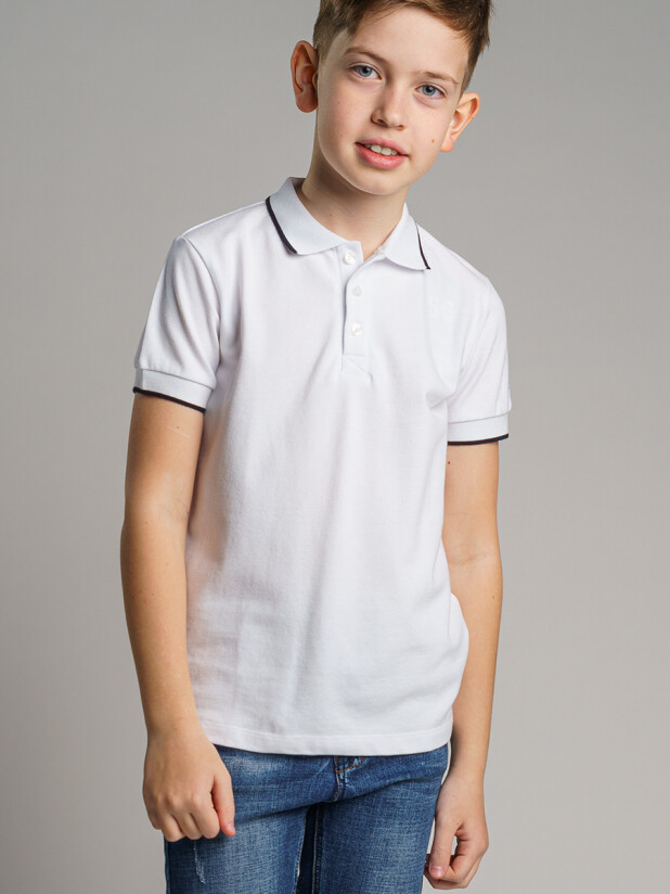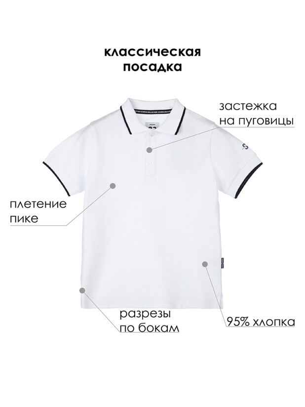 Совет по стилю: сочетайте это белое школьное поло с тёмными брюками, джинсами или шортами от PlayToday. Поверх можно добавить жилет, пиджак или лёгкую куртку — получится универсальный образ для школы или выхода в город.