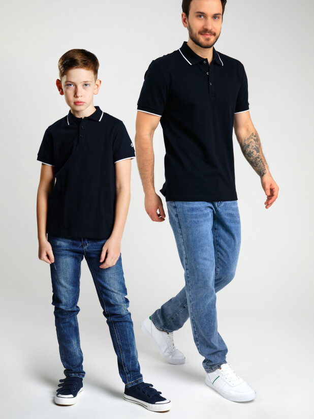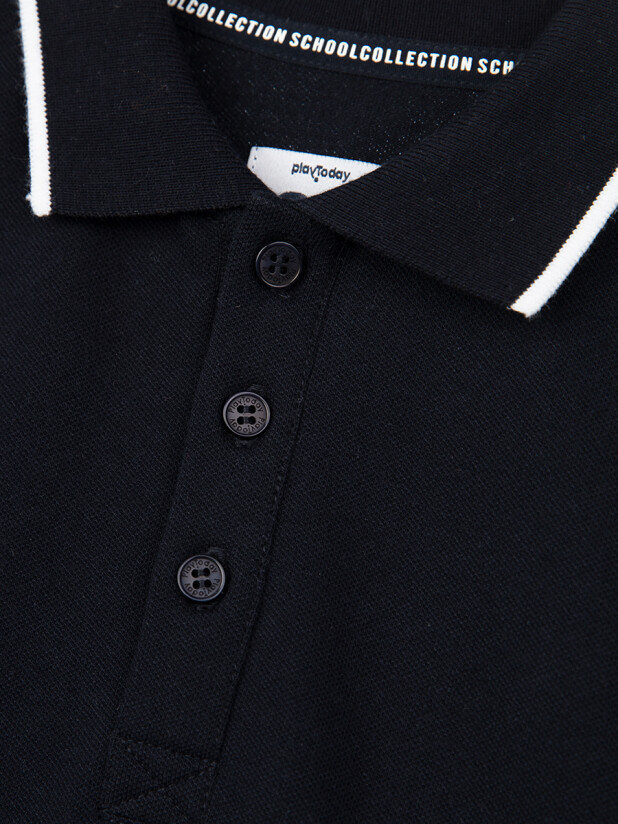 Совет по стилю: сочетайте это темно-синие школьное поло со светлыми брюками, джинсами или шортами от PlayToday. Поверх можно добавить жилет, пиджак или лёгкую куртку — получится универсальный образ для школы или выхода в город.