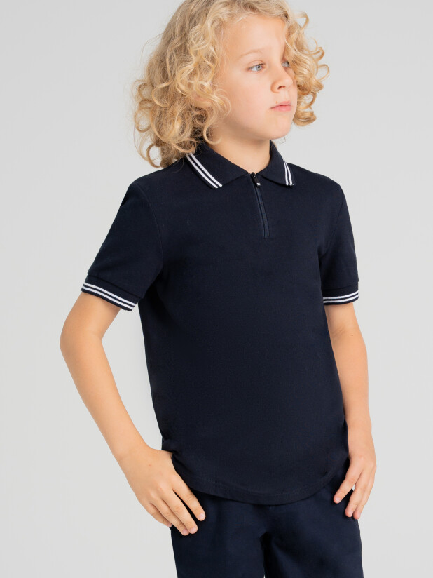 Школьная темно-синяя футболка поло с коротким рукавом и контрастным воротником для мальчика подростка от PlayToday — стильная альтернатива классической рубашке. Это классическое поло выглядит аккуратно, опрятно и по-взрослому, оставаясь при этом невероятно удобным для школьных будней.