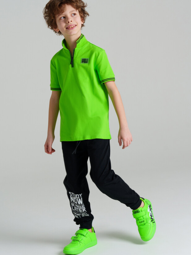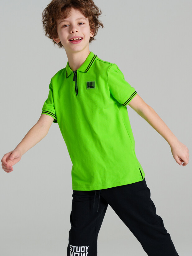Поло классической посадки из фактурного трикотажного полотна пике. Планка с застежкой на молнию.