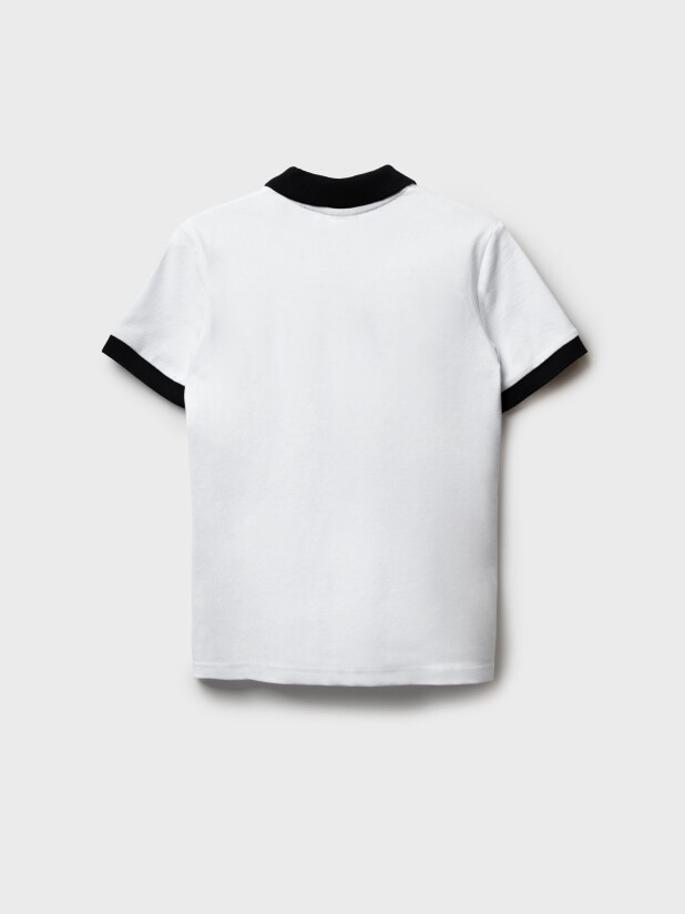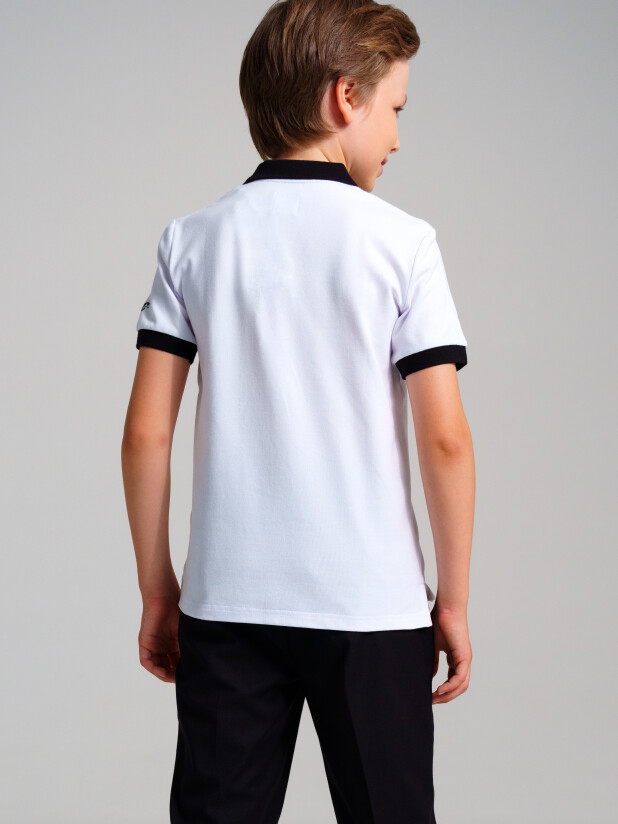 Белая школьная футболка поло с коротким рукавом для мальчика подростка от PlayToday — стильная и удобная альтернатива классической рубашке. Поло с контрастным воротником выглядит элегантно, аккуратно и по-взрослому, оставаясь при этом комфортным для школьных будней