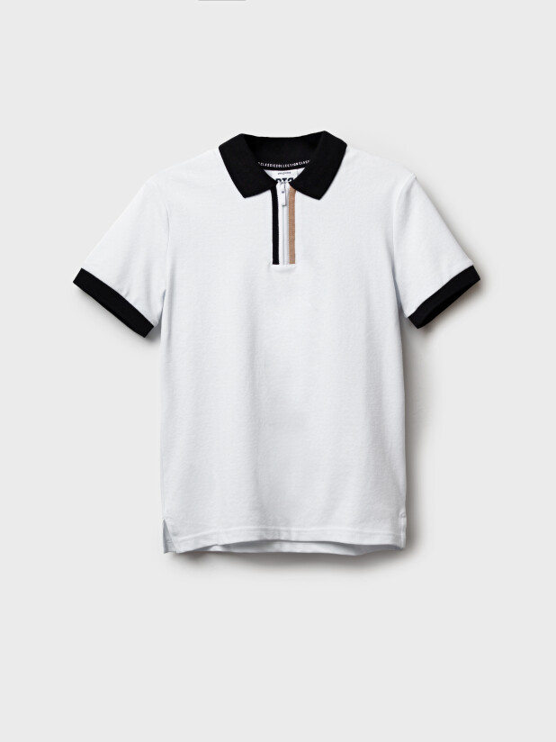 Прямой крой, контрастный воротник и аккуратная планка на молнии создают современный строгий образ. Это базовое подростковое поло отлично подходит как для школы, так и для повседневных луков.