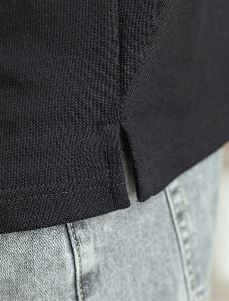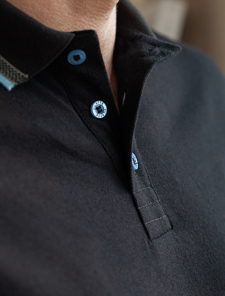 Размер товара на первом фото: 54 Футболка-поло выполнена из фактурного трикотажа. Модель с прямого кроя с небольшими разрезами по бокам дополнена вязаным воротником с контрастными пуговицами в тон тонкой полосы и вышитым логотипом бренда. Премиальный хлопковый трикотаж гарантирует комфорт и износостойкость. На рукаве брендированная нашивка из эко-кожи.