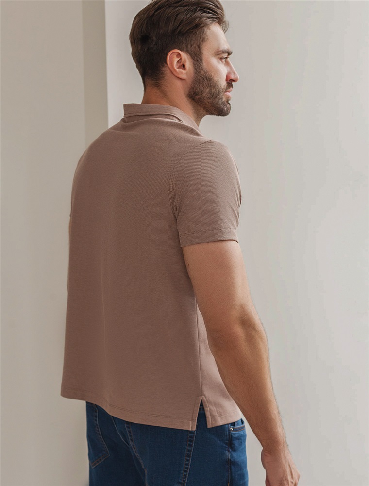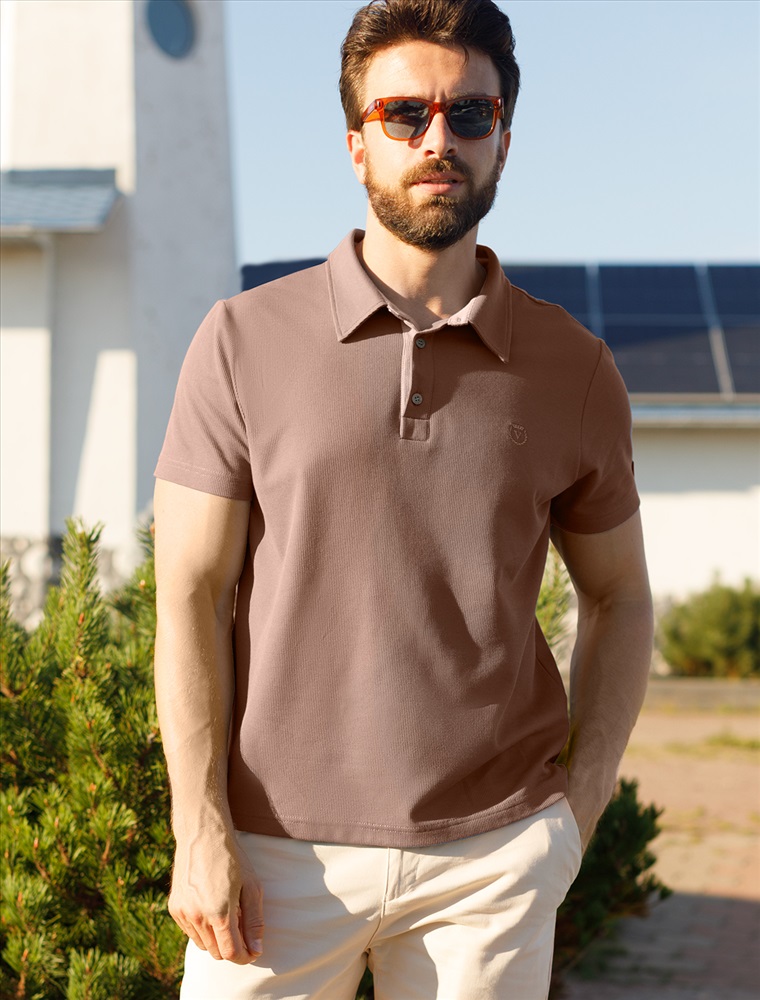 Параметры модели на первом фото: Рост 190, бюст 108, талия 87, бедра 104 Футболка-поло выполнена из фактурного трикотажа. Однотонная модель с контрастной планкой и металлическими пуговицами с логотипом бренда. Эластичный хлопковый материал хорошо пропускает воздух и комфортно облегает фигуру. В таком изделии не будет жарко даже в самое теплое время года. Комментарии к товару