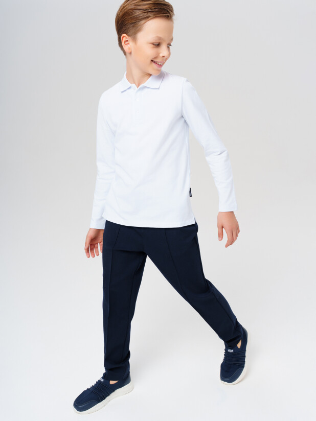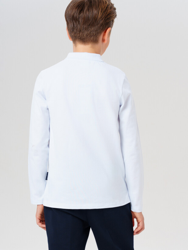 Школьная белая футболка поло с длинным рукавом для мальчика подростка от PlayToday — стильная альтернатива классической белой рубашке. Лаконичная, удобная и практичная — идеально подходит для школы и повседневных образов.