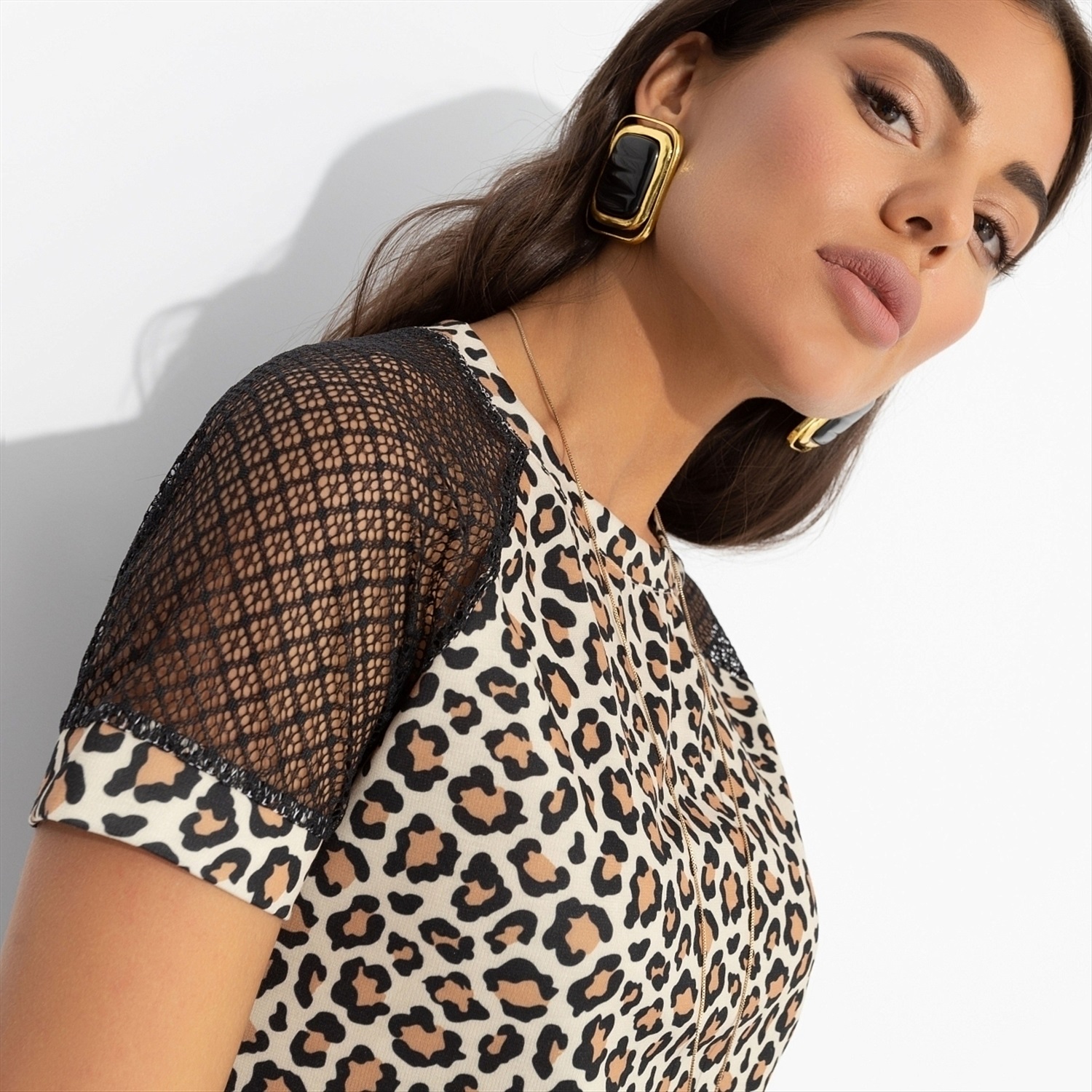 Пора выпустить свою кошку на волю. Дать пространство себе, чтобы проявиться дерзко и самобытно. Перестать быть хорошей скромницей, а показать всем, кто здесь главная по футболочкам в леопарде от ЧАРУТТИ. Футболка классического кроя. Изделие чуть удлиненное. Рукава сделаны из тонкой сеточки. Футболка хорошо смотрится в заправленном виде и навыпуск.