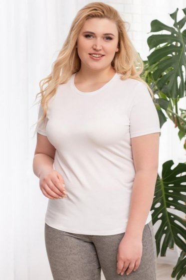 Оптовая продажа. Футболка женская из трикотажного полотна кулирка, прямая, полуприлегающего силуэта, с короткими втачными рукавами, круглым вырезом горловины, однотонная.
