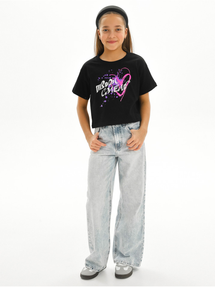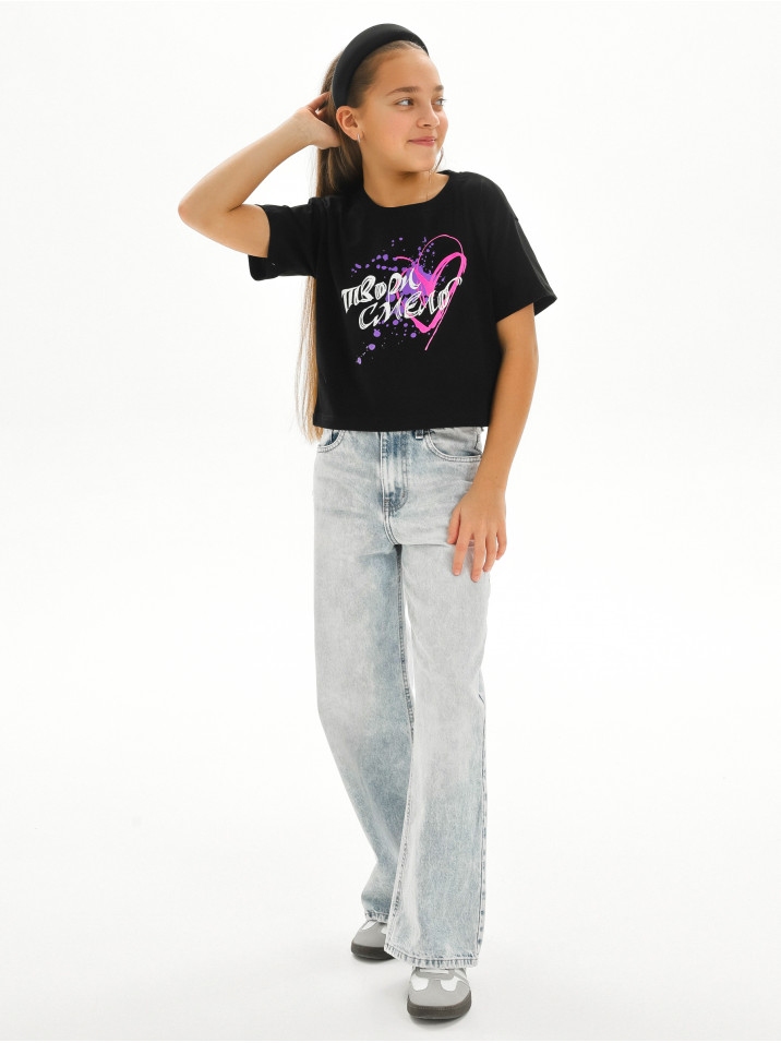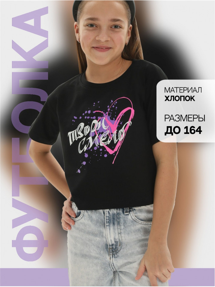 Стильная футболка для девочки с современным принтом в стиле оверсайз. Широкий размерный ряд охватывает разные возраста детей от дошкольников до школьников подростков или на возраст 6, 7, 8, 9, 10, 11, 12, 13 и 14 лет. Футболка классического прямого кроя с короткими рукавами и круглым вырезом горловины. Детская футболка на каждый день на прогулку, дачу, в садик, для дома, в школу. Отлично сочетается с шортами, джинсами, брюками, юбками. Модная хлопковая футболка, материал приятен на ощупь, позволяет телу дышать, при бережном уходе не дает усадку и не деформируется. Принт яркий и долговечный, напечатан по современным технологиям гипоаллергенной безопасной для кожи краской. Отличный подарок для девочки на день рождения и без повода.