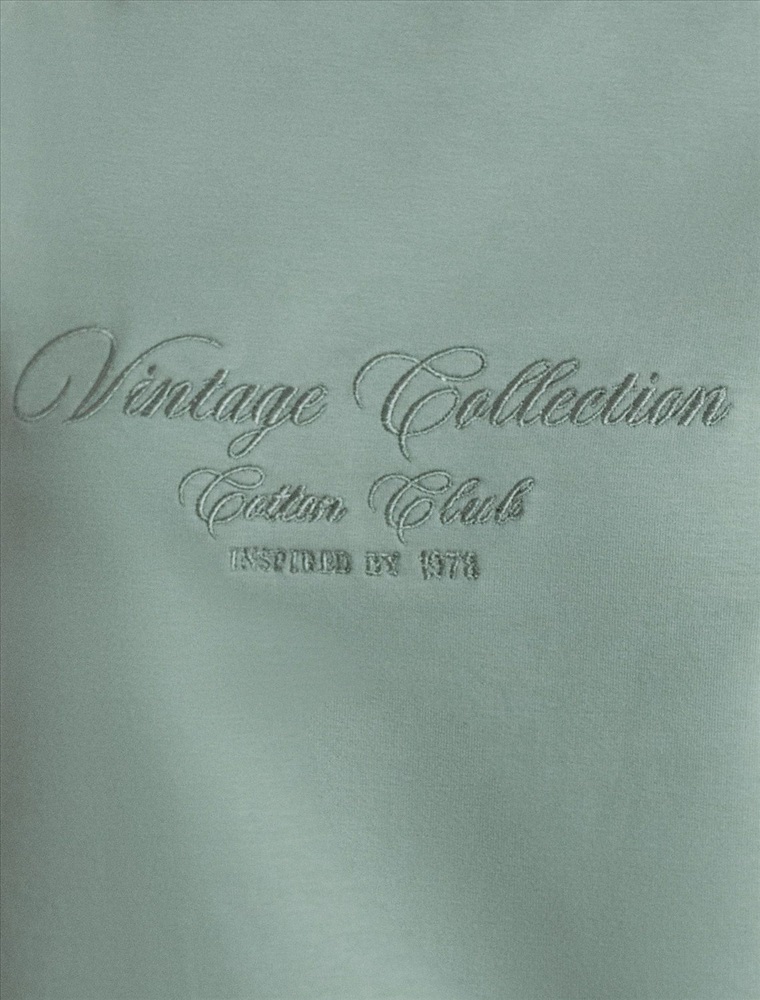 Футболка светло-оливкового цвета свободного кроя выполнена из премиального футера двухнитки с эластаном плотностью 240 Г/м2. . Натуральный материал отличается мягкостью и приятной текстурой, позволяя коже дышать и обеспечивая максимальное удобство при носке. Наличие эластана в составе изделия гарантирует абсолютный комфорт и формоустойчивость. Круглый ворот, рукава средней длины и спущенная линия плеча придают футболке стильный и современный вид, делают образ расслабленным и непринужденным, такой вариант отлично сядет на большие размеры. Футболку украшает принт виде надписи. Перевод надписи: Vintage collection - Витнажная коллекция. Плотная футболка идеально подходит для повседневной носки и незаменима для тех, кто ценит удобство и свободу движений без компромиссов по стилю.