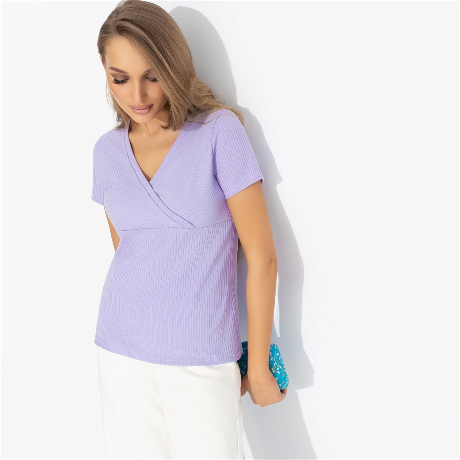 Когда ты станешь счастливой, то никому не скажешь, но будут знаки. Футболка ЧАРУТТИ в цвете только распустившейся сирени выдаст тебя с головой. Приталенный силуэт подчеркивает формы. Акцентная сборка спереди. Материал в рубчик. Изделие хорошо смотрится в заправленном виде и навыпуск.