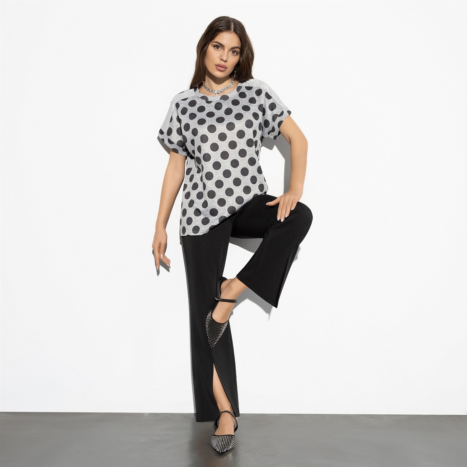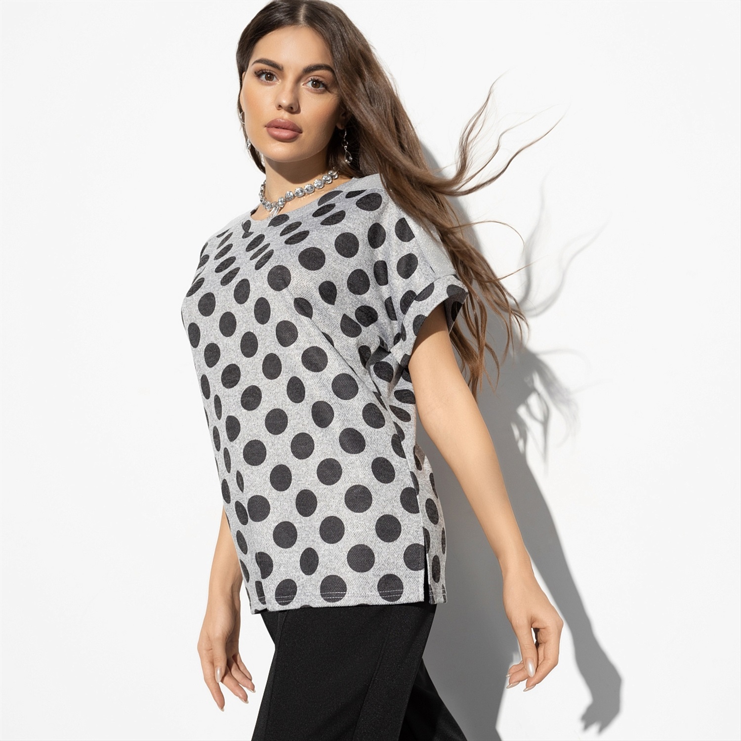 Воплощение голливудского шика и утонченности, эта футболка с классическим принтом в «горох» станет идеальной базой для создания ярких и стильных образов. Голливудские актрисы и весь высший свет уже давно оценили этот принт за его универсальность и харизматичность, и теперь он может стать частью вашего стиля. Оптовая покупка позволяет вам предлагать своим клиентам или сотрудникам трендовые вещи, которые никогда не выйдут из моды. Представьте, как эти футболки наполнят ваши полки или гардеробы друзей и близких настоящими иконами стиля, которые излучают шарм и изысканность.
