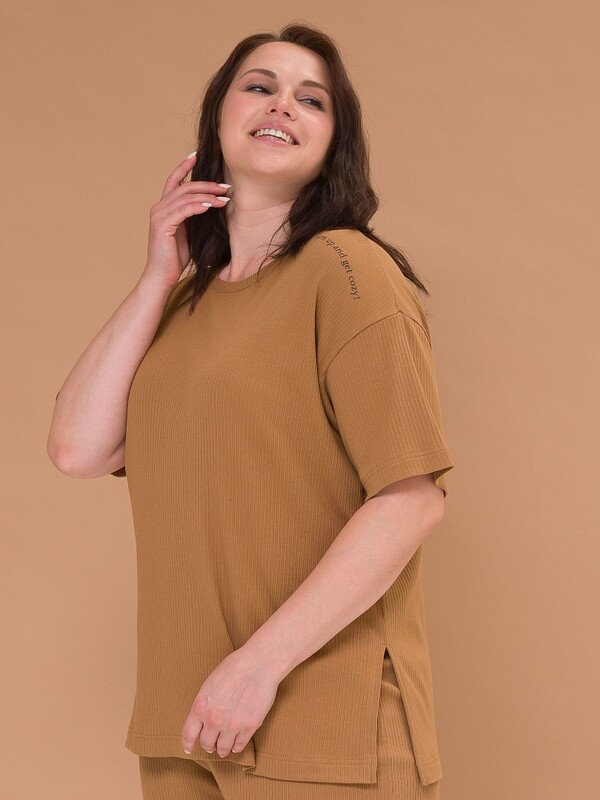 Классическая женская футболка оверсайз, однотонная с принтом надписью. С круглым вырезом из невероятно мягкой ткани в широкий рубчик. Удлинённая с разрезиками внизу, можно модно заправить только спереди или носить на выпуск. Стильная футболка женская с коротким спущенным рукавом это базовая одежда женского гардероба без которой не обходится ни одна современная модница. Универсальная модель, свободная футболка, сочетается совершенно с любыми вещами. Комфортная плотная хлопковая ткань подарит приятные ощущения для кожи, подходит для повседневной носки на каждый день, как домашняя одежда и пижама для сна. А еще это идеальная спортивная майка для бега, йоги, фитнесса. Свободный крой не сковывает, в ней любое движение будет в радость. Подарок для девушки - это футболки женские больших размеров представленные в размерном ряде. Комментарии к товару