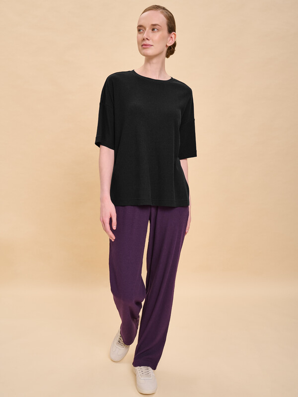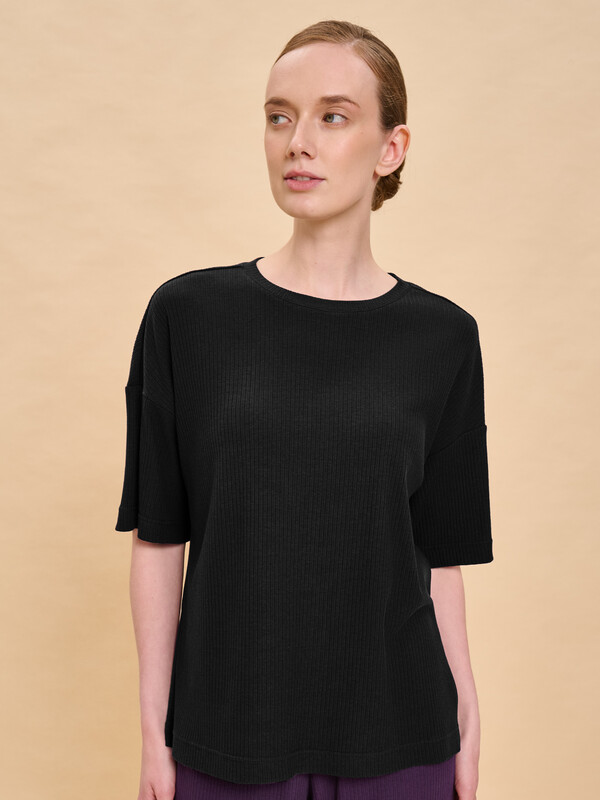 Футболка однотонная женская. Комфортная мягкая футболка силуэта оверсайз со спущенным плечом подарит вам комфорт и станет отличным дополнением повседневного гардероба. Модель выполнена из эластичной рибаны (ткань в рубчик), вырез горловины также обработан рибаной — она прекрасно держит форму, не растягивается, при этом футболку удобно надевать и снимать. Базовая футболка с рукавом длиной до локтя — актуальный тренд сезона. Изделие неприхотливо в уходе. Модель лаконичного дизайна, без принта. В составе ткани преобладает высококачественный хлопок — майка мягкая, дышащая, приятная на ощупь. Полиэстер помогает сохранить первоначальную форму и цвет в течение длительного времени. Однотонная футболка выполнена в актуальных и при этом универсальных цветах, её легко комбинировать с различными брюками, шортами, юбками. Футболка женская без принта — базовый элемент гардероба, пригодится в любой ситуации. Её можно носить в качестве домашней одежды и не только — можно создать множество различных актуальных образов. Однотонная футболка женская подходит для любого времени года, её можно носить как летом, так и в холодное время года в качестве среднего слоя одежды, а также на спорт. Помните о правильном уходе за изделием: рекомендуется стирать при температуре не выше 30 °C, без предварительного замачивания, с изнанки. Это поможет сохранить качество и цвет футболки на длительное время.