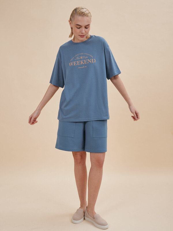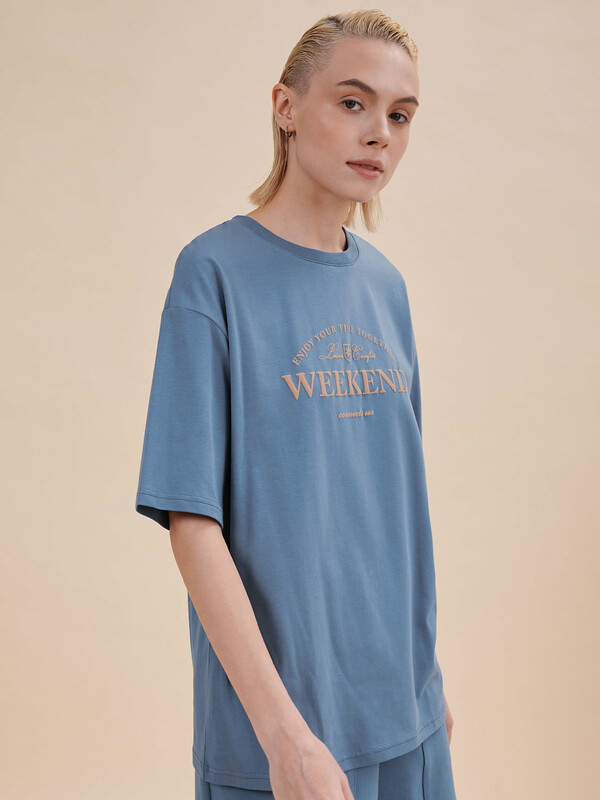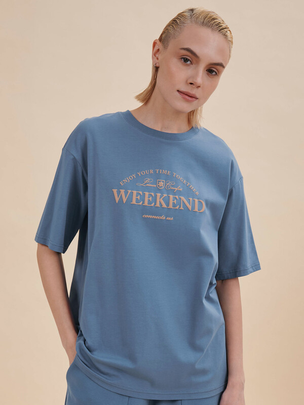 Женская футболка с принтом. Футболка оверсайз со спущенным плечом подарит вам комфорт и свободу движения. Джемпер такого силуэта скрывает недостатки фигуры и подчёркивает достоинства. Майка с удлинёнными широкими рукавами — один из актуальных модных трендов сезона. Она неприхотлива в уходе. Трикотажная футболка украшена трендовым принтом в университетском стиле по переду, надписи переводится: "наслаждайтесь временем, проведённым вместе", "досуг, комфорт", "выходные на объединяют". Принт качественный и стойкий — без проблем переносит многочисленные стирки. В составе ткани преобладает высококачественный хлопок — футболка мягкая, приятная на ощупь и позволяет коже дышать. Эластан помогает изделию надолго сохранить первозданную форму. Джемпер представлен в следующих актуальных цветах: чёрный, голубой, синий, жёлтый, белый, зелёный, бежевый. Размерная линейка: XS (42); S (44); M (46); L (48); XL (50). Модель идеальна и для женщин, и для девушек, и для девочек-подростков. Базовая футболка оверсайз универсальна, отлично подходит для работы, учёбы, спорта, прогулок, отдыха, а также для дома и сна. Хлопковая футболка легко сочетается с различными брюками и шортами. Её можно носить летом, зимой и в демисезон (осенью и весной). Модная футболка— это прекрасный подарок сестре, подруге или маме на любой праздник. Выбирайте нужный размер по таблице размеров на фото. Цвет товара на экране вашего устройства может отличаться от цвета изделия вживую.
